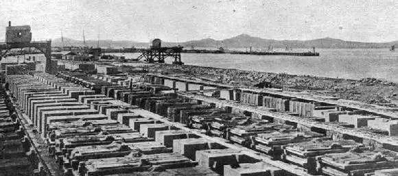 1929年,一列装满货物的集装箱列车正准备发往欧洲,这见证了当时的国际贸易。