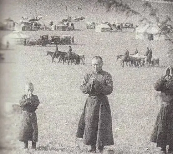 1935年,在一个蒙古族传统节日上,人们正在欢庆。