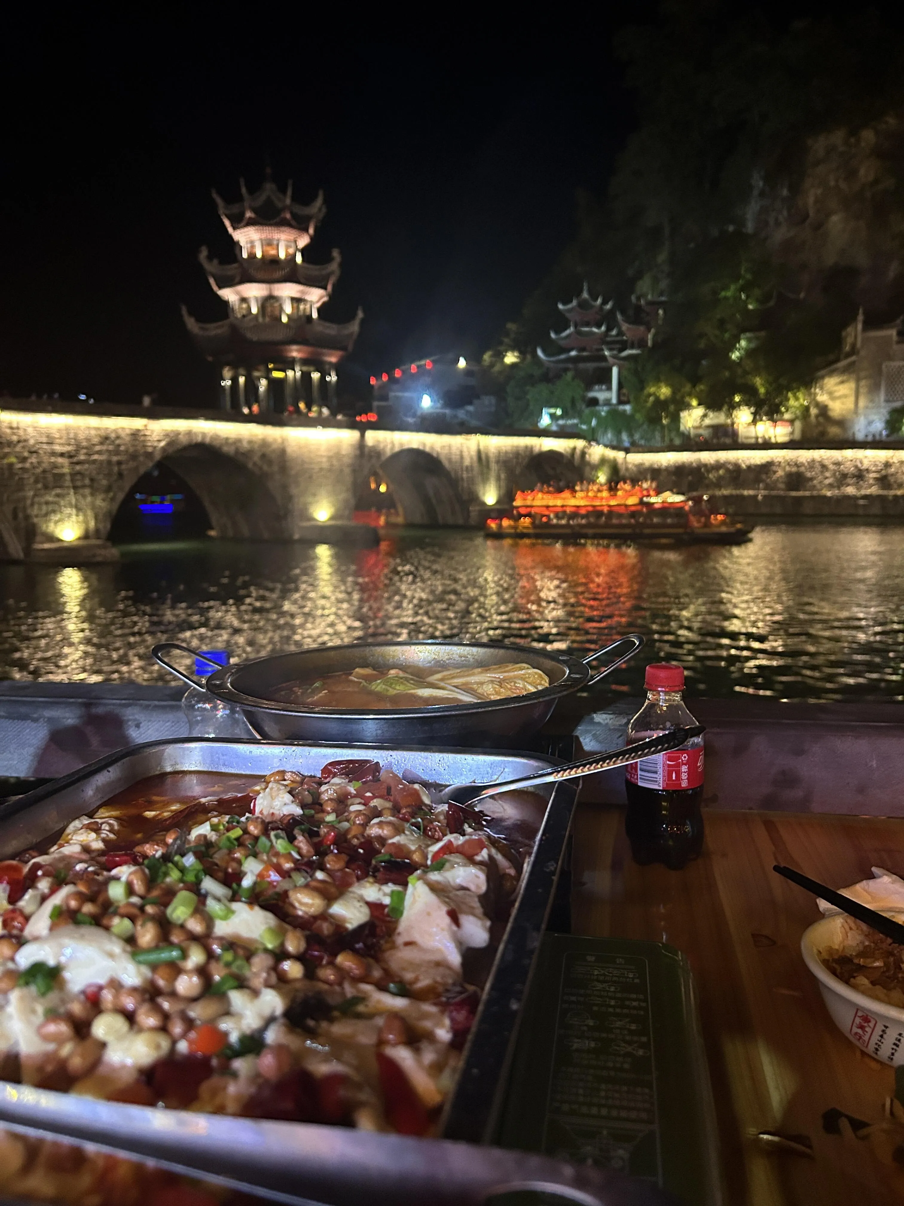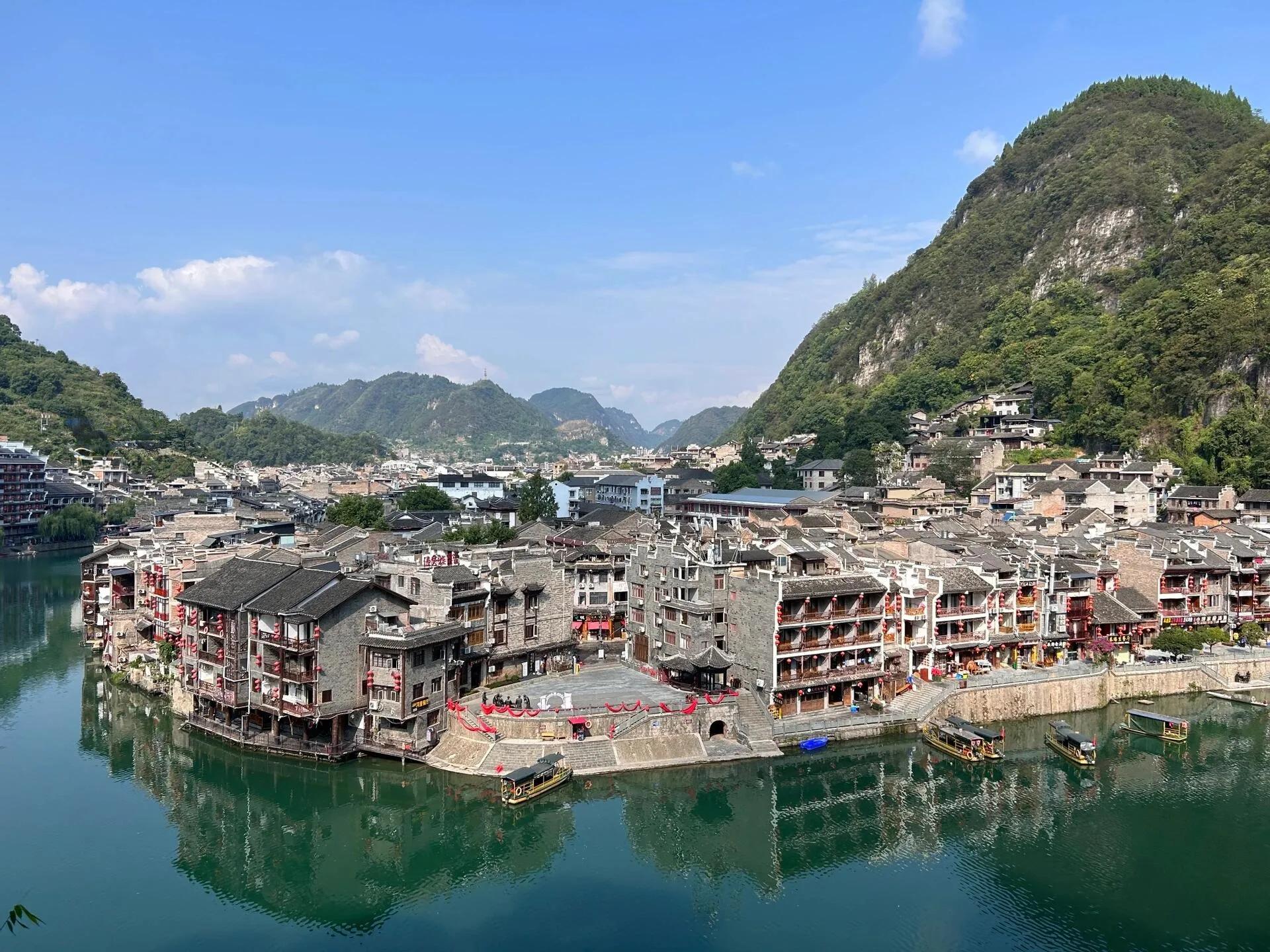 美食方面,苗大妈私房菜位于舞阳河畔,可以一边用餐一边欣赏祝圣桥的壮丽景色。这里的酸汤牛肉和豆腐烤鱼(团江)值得一试,食材新鲜,酸汤开胃,烤鱼入味。本地特色锅巴粉口感独特,也不容错过。袁家嫩豆腐配上特制的辣椒酱,香辣可口,同样推荐品尝。
