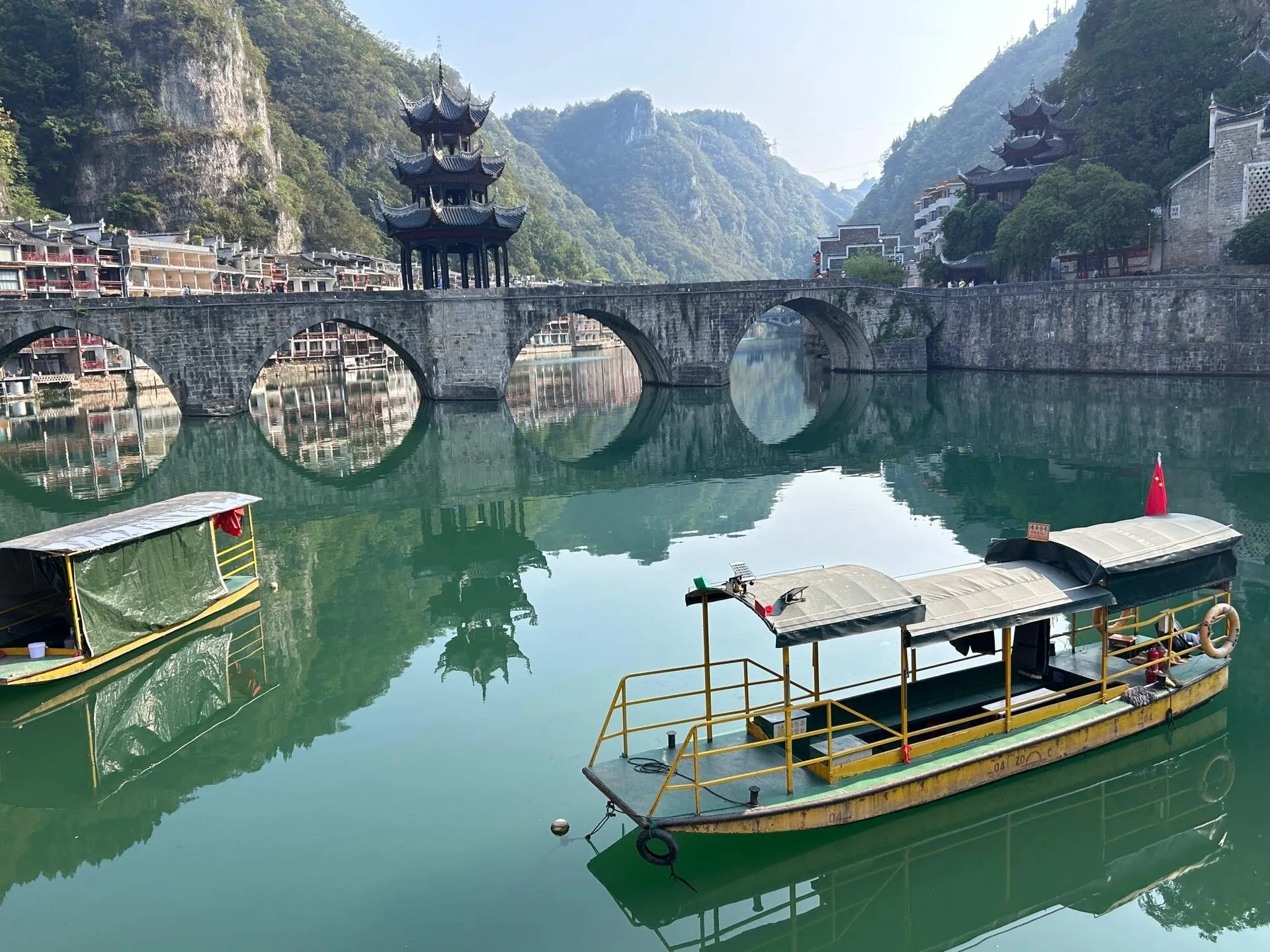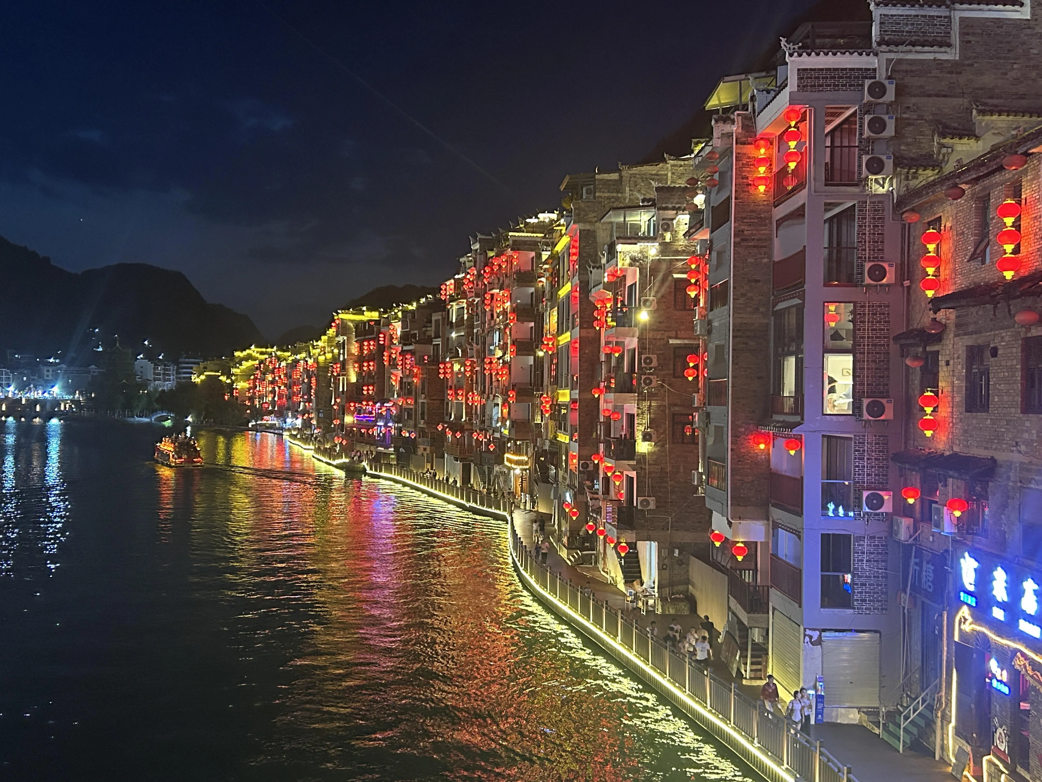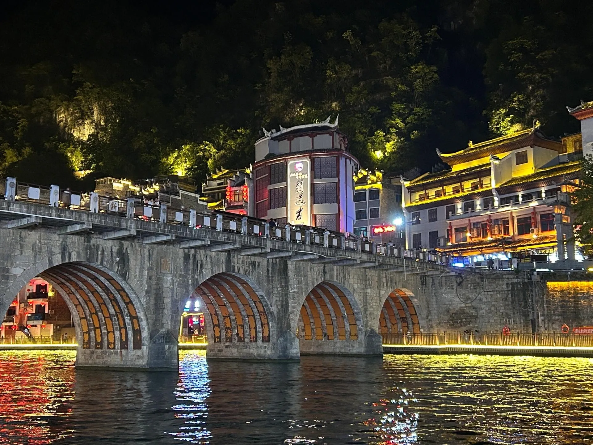 禹门码头提供游船服务,白天60元,晚上80元。乘船游览舞阳河,欣赏沿途的自然风光,白天清新,夜晚绝美。