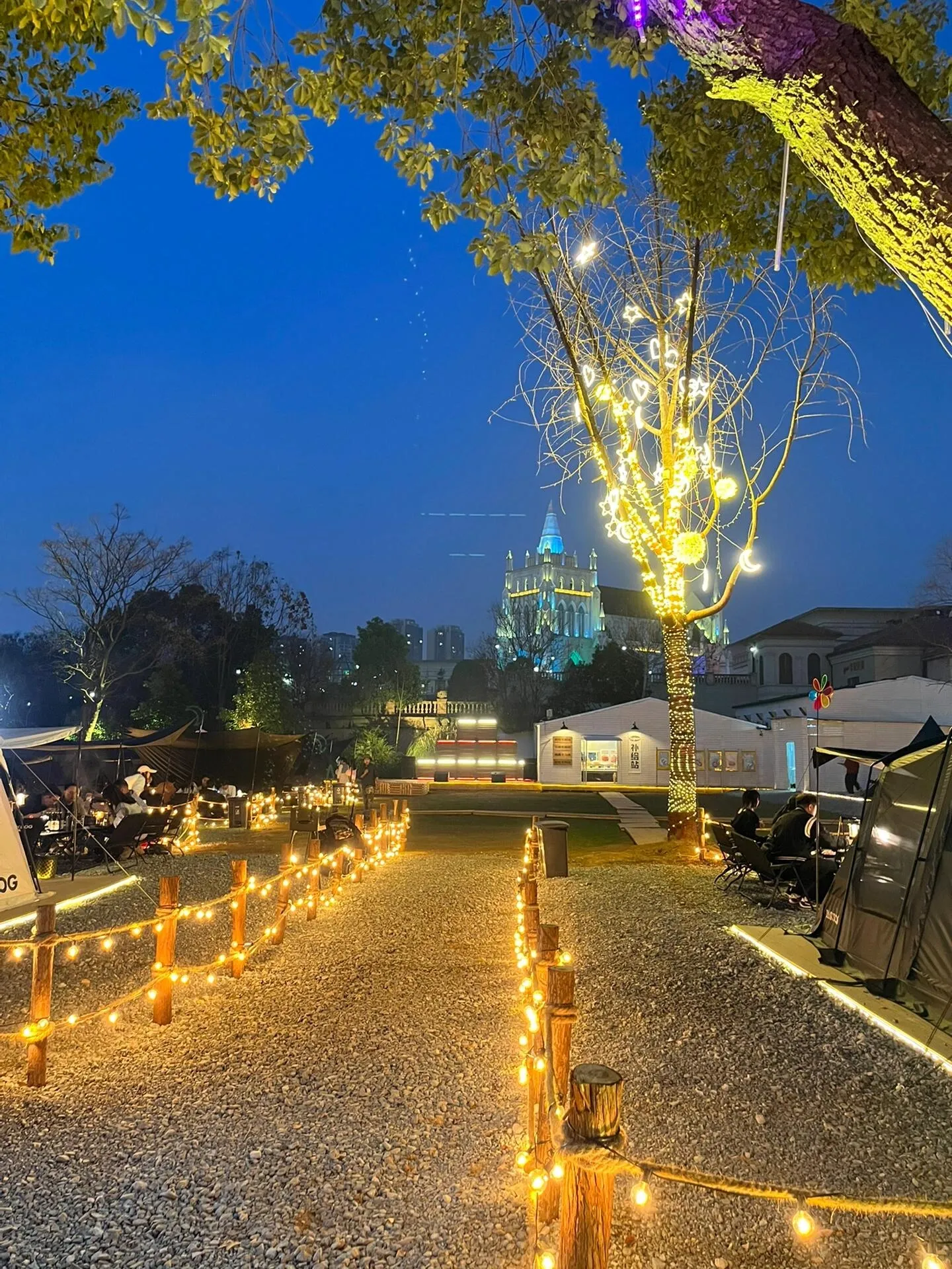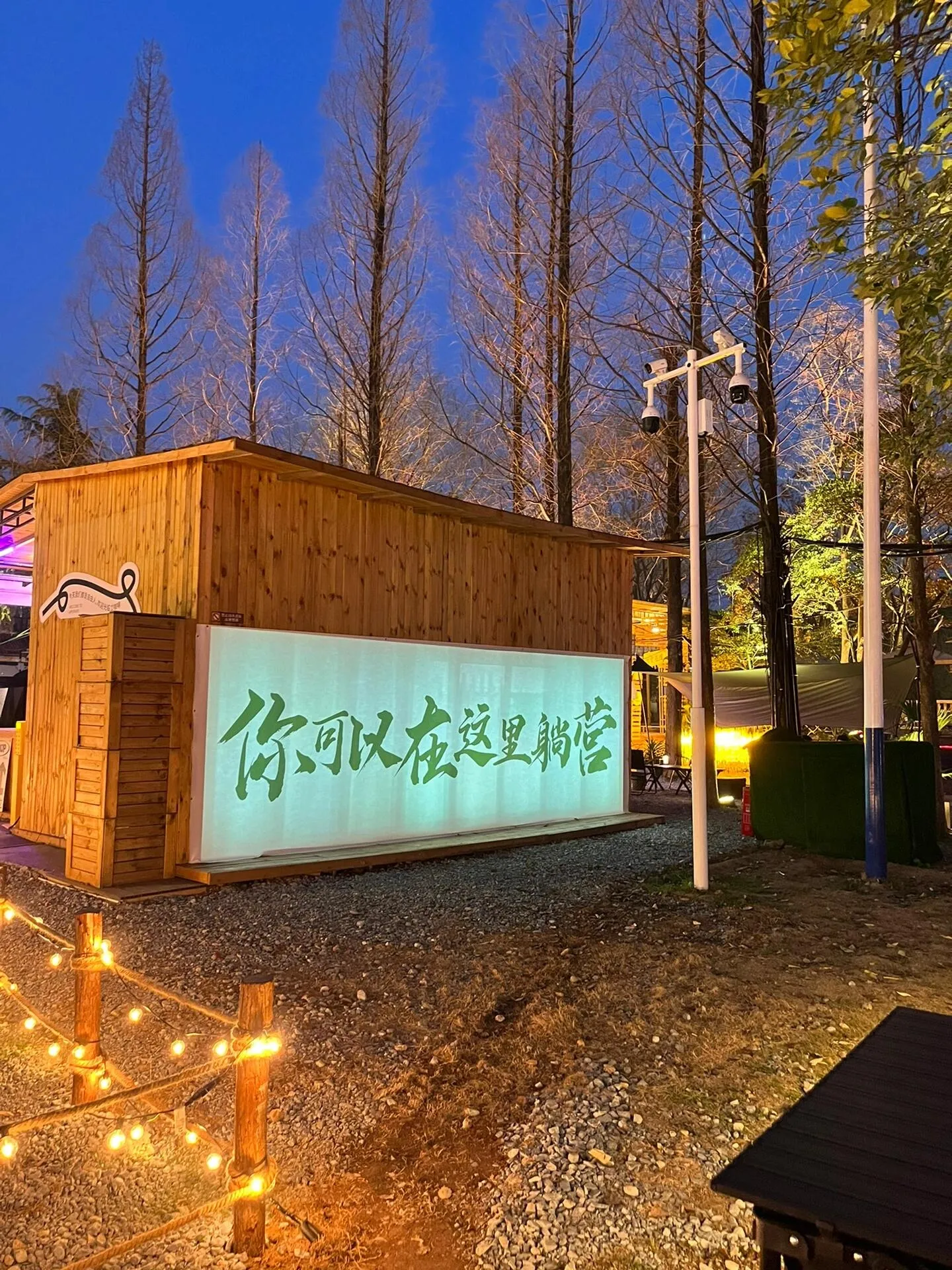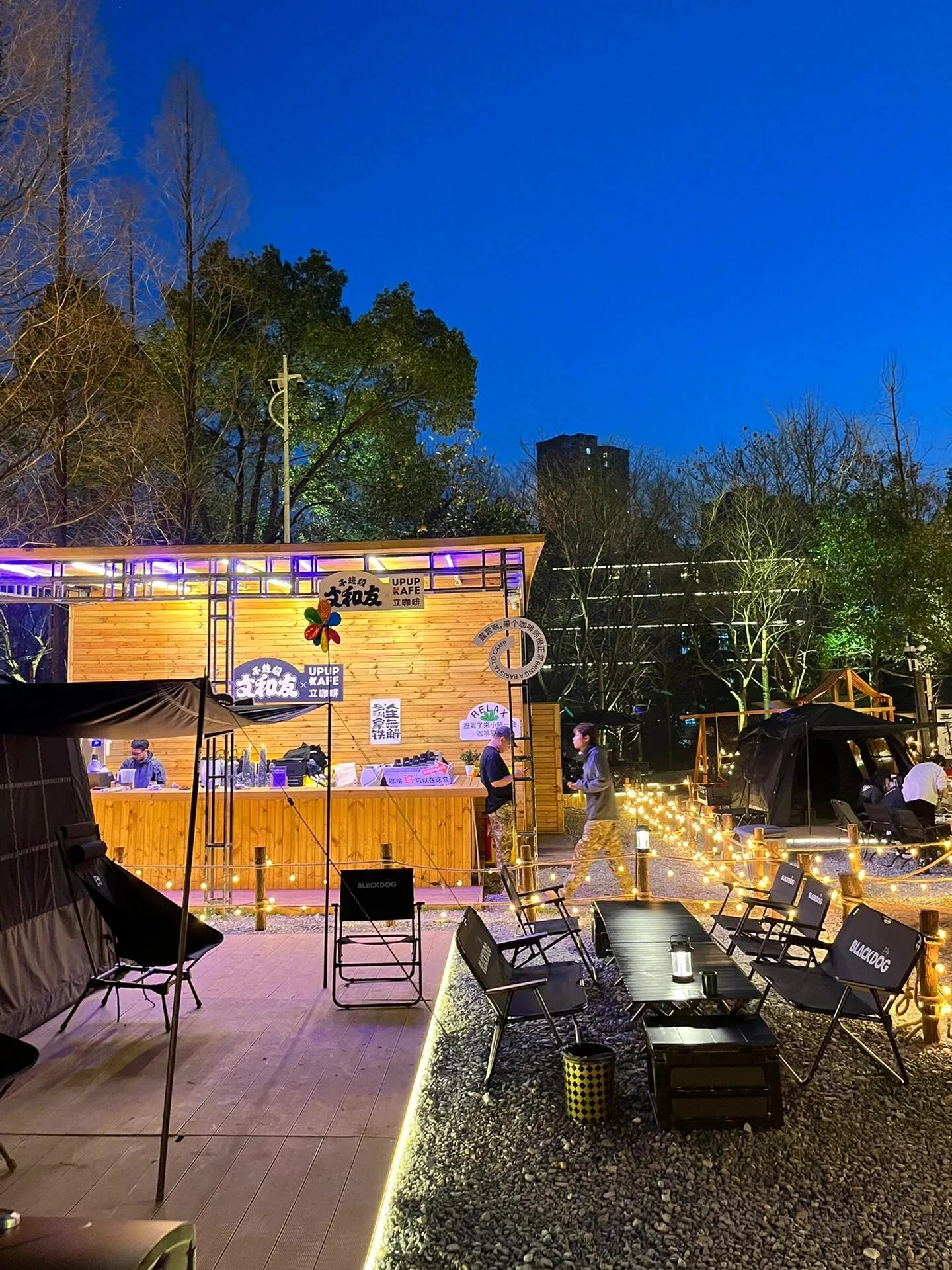 这里分为天幕区和帐篷区,环境非常棒。园区内设有水吧,可以点各种饮料和咖啡。晚上灯光亮起时,氛围感瞬间拉满!