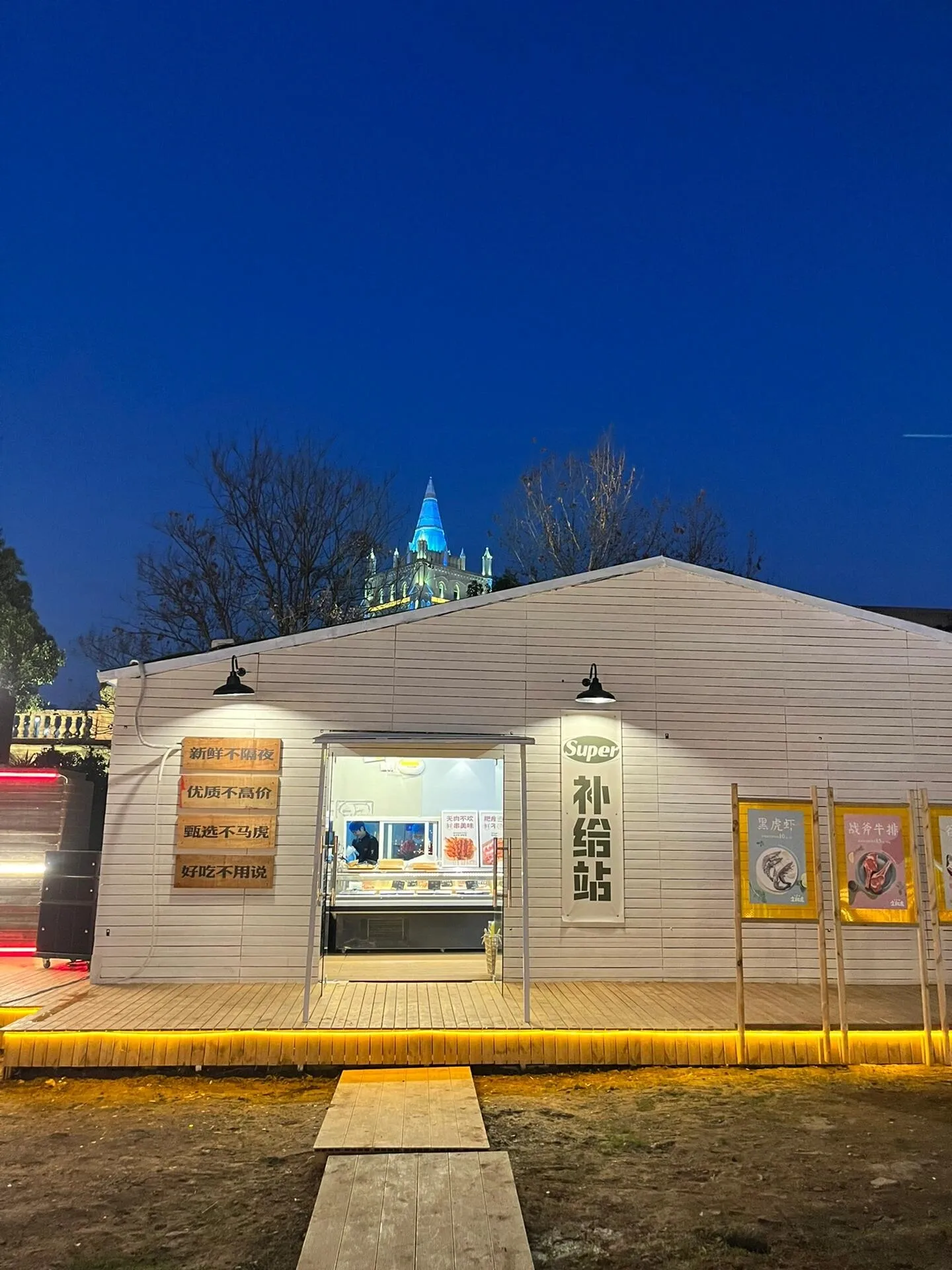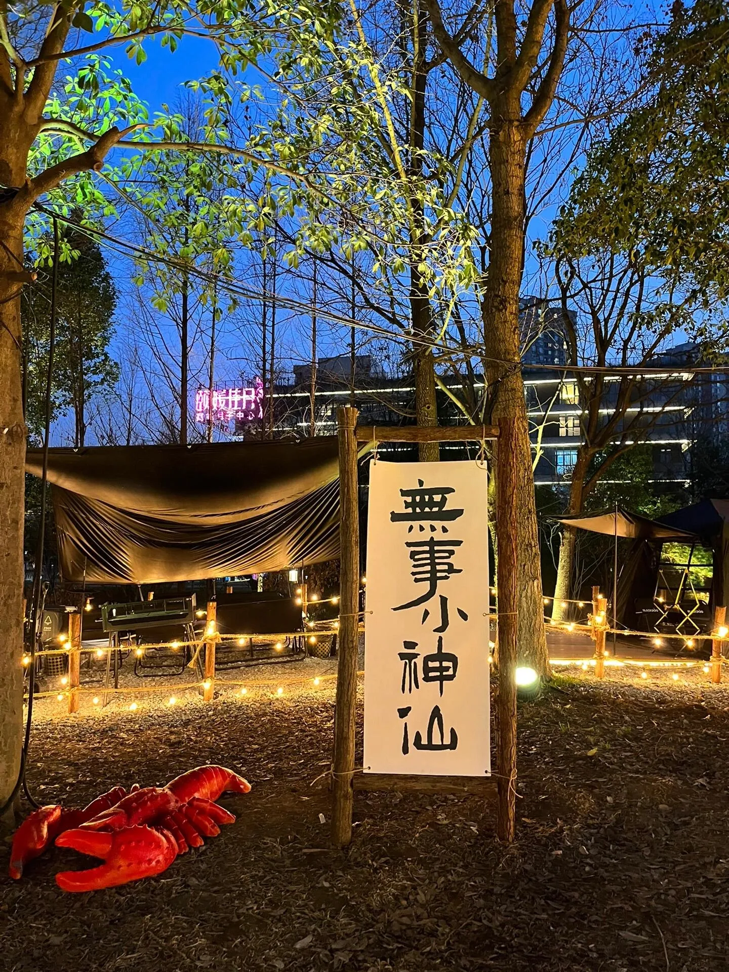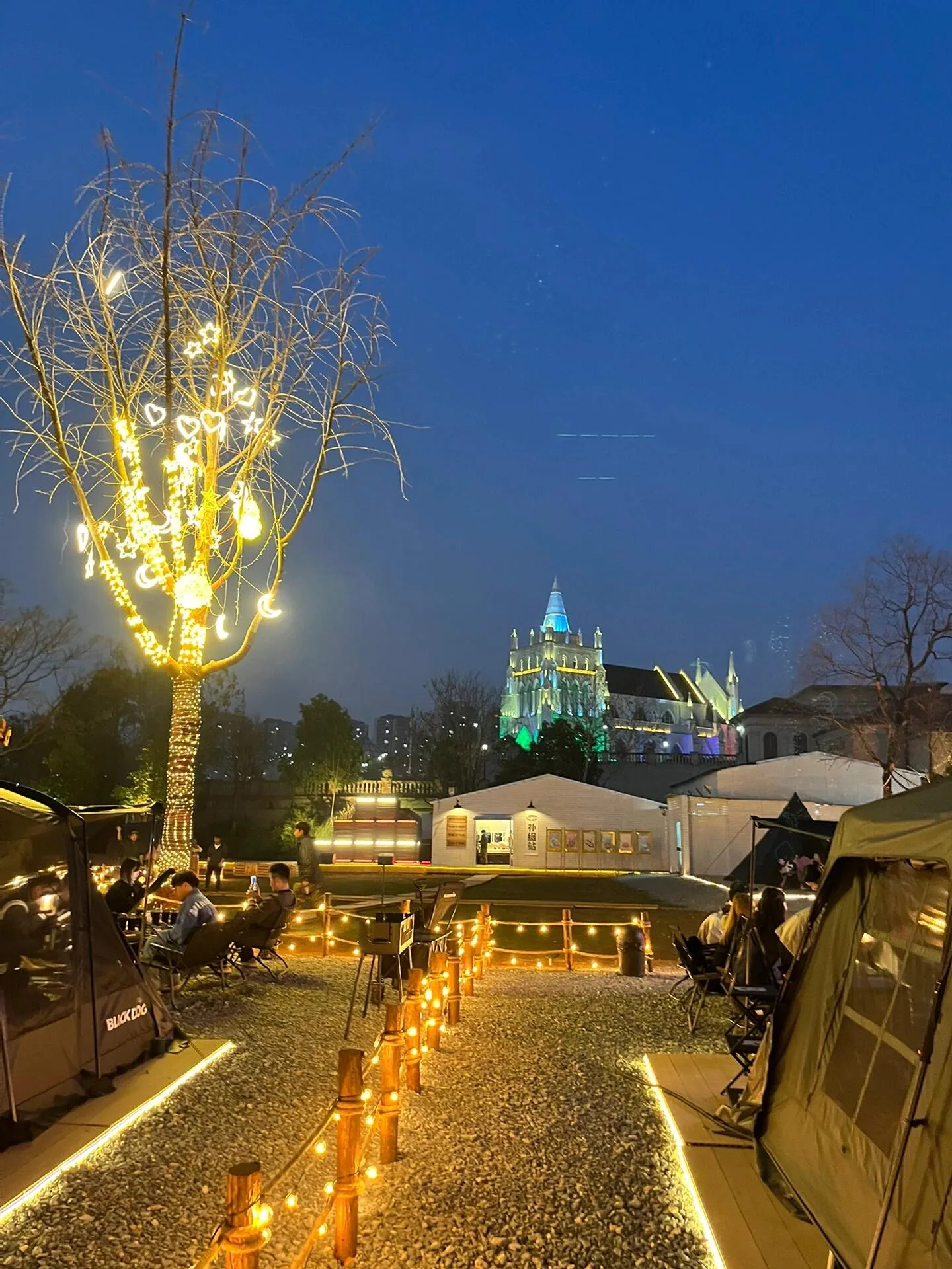 这里分为天幕区和帐篷区,环境非常棒。园区内设有水吧,可以点各种饮料和咖啡。晚上灯光亮起时,氛围感瞬间拉满!
