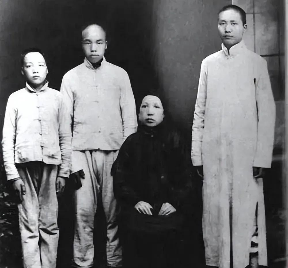 (图:毛泽东、毛泽民、毛泽覃与母亲合影)