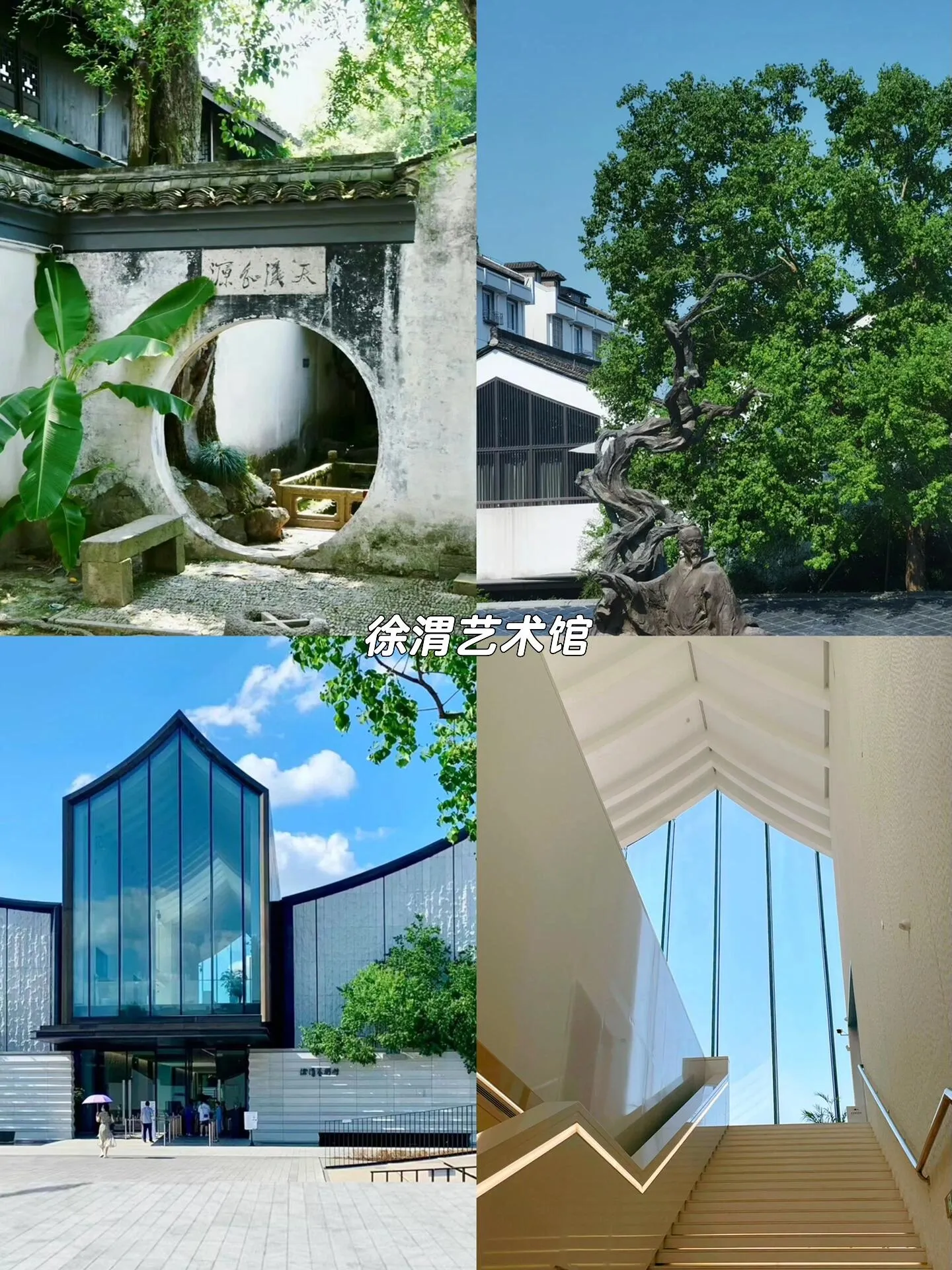 灰瓦白墙的中式建筑,周围还有青藤书屋、绍兴师爷馆可以一起游玩。