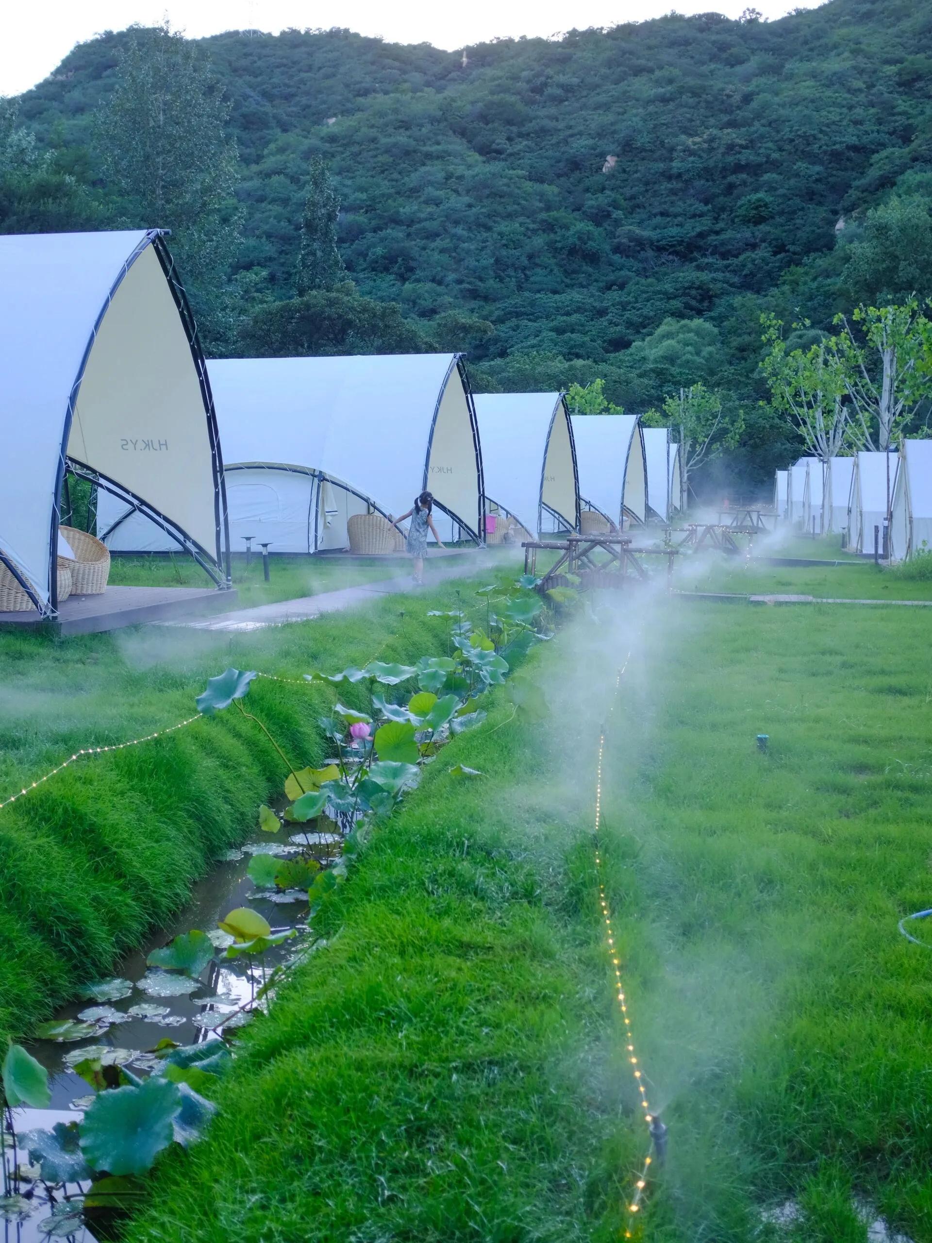 一个隐藏在山谷的营地,挨着密云水库风景绝美。有徒步线路,最美观景台可俯瞰密云水库。园区里有多种帐篷可选择,可拎包入住。