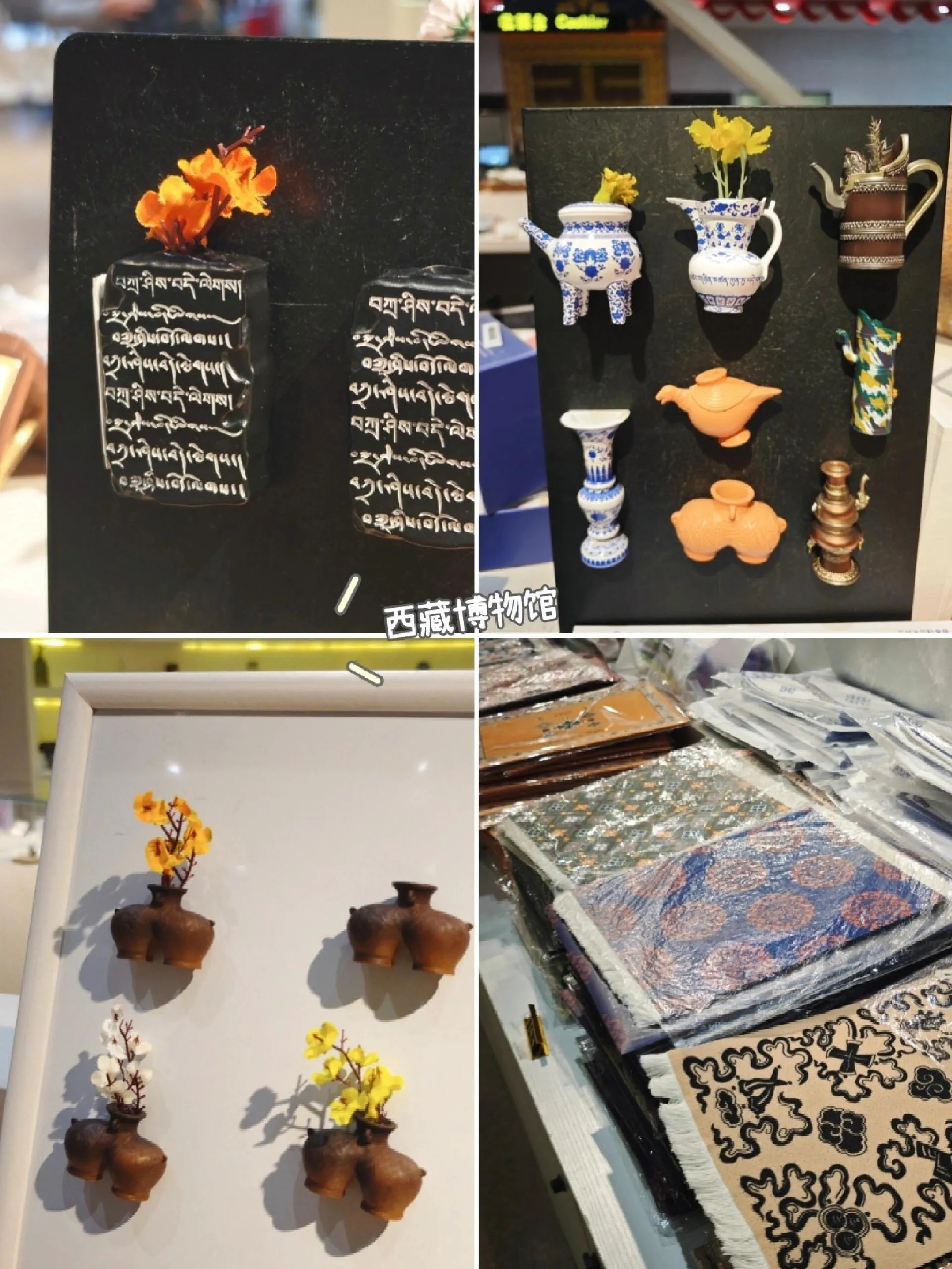 西藏博物馆:博物馆的文创产品近年来质量有所提升。今年推出的冰箱贴和鼠标垫设计精美,冰箱贴还可以插小花,鼠标垫图案精美,也可以当作桌垫使用。