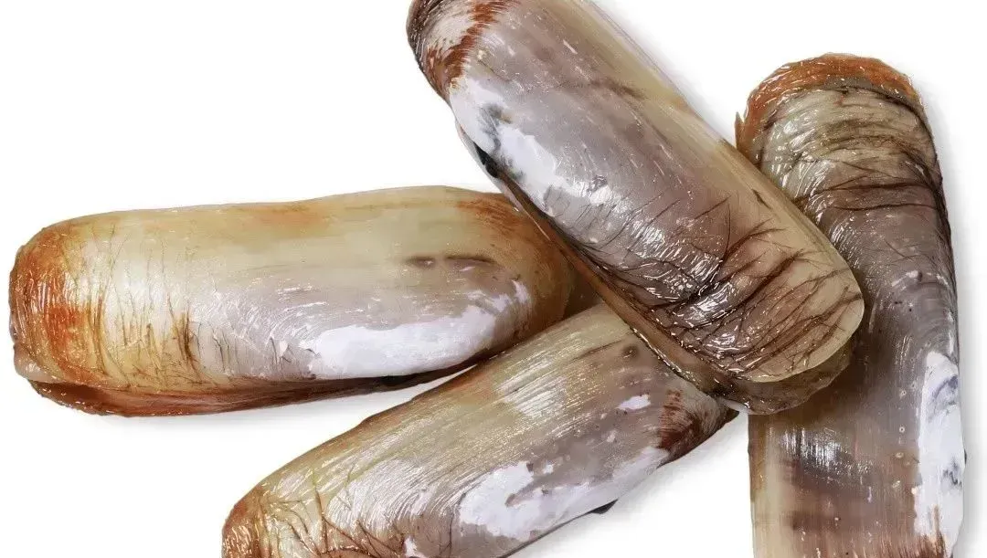 “蛏子”是我们常吃的帘蛤目双壳贝,其贝壳近乎长方形,质地柔脆,容易被掰断。