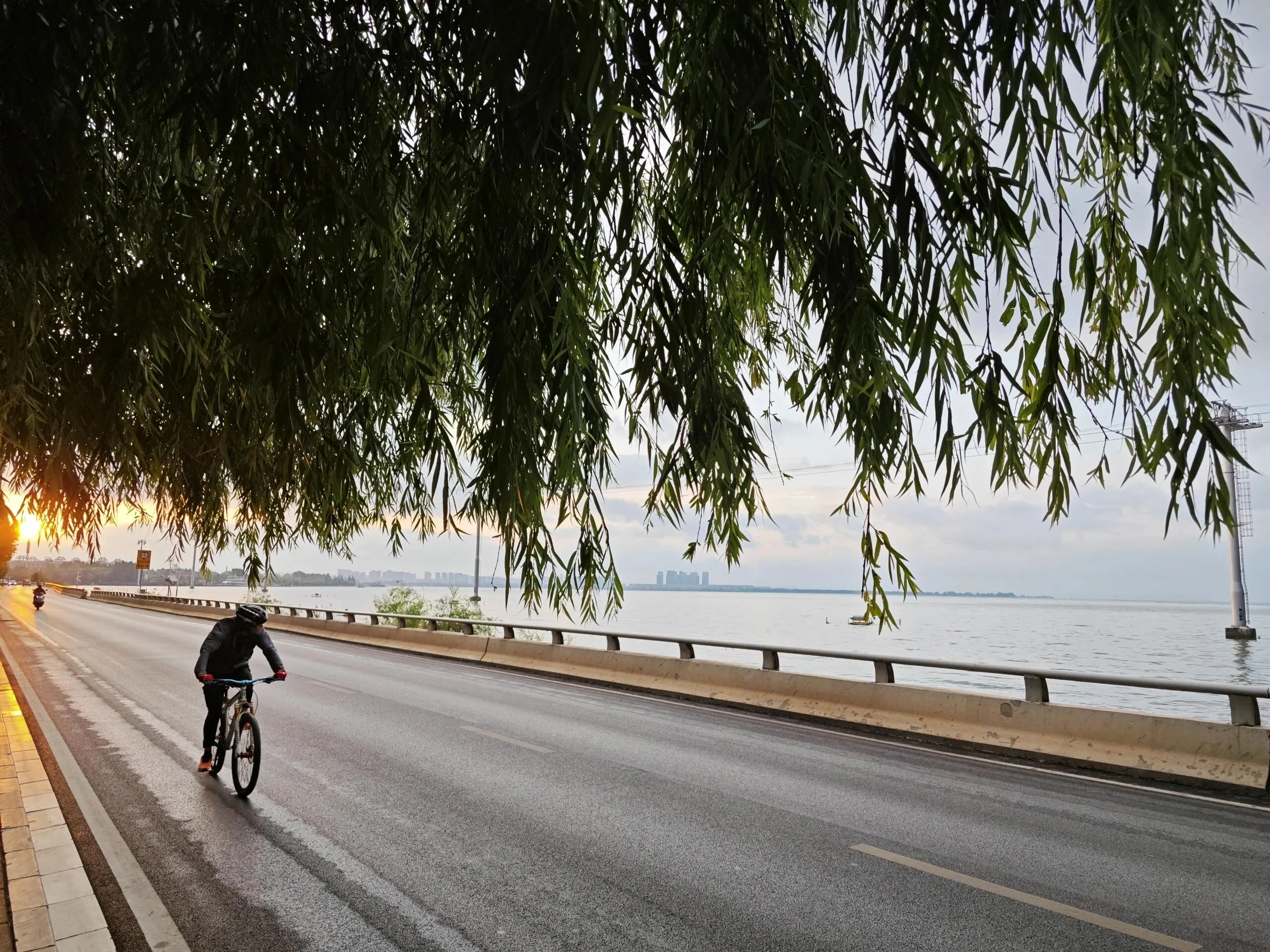 风景:沿线真的是美翻了,感觉是从来没有遇到这么好的路跑路线。 湖水里碧波荡漾,许多翠鸟叽叽喳喳唠个不停 ,太阳光撒到路面上,感觉世界一下子这么美好,什么烦恼都没了!
