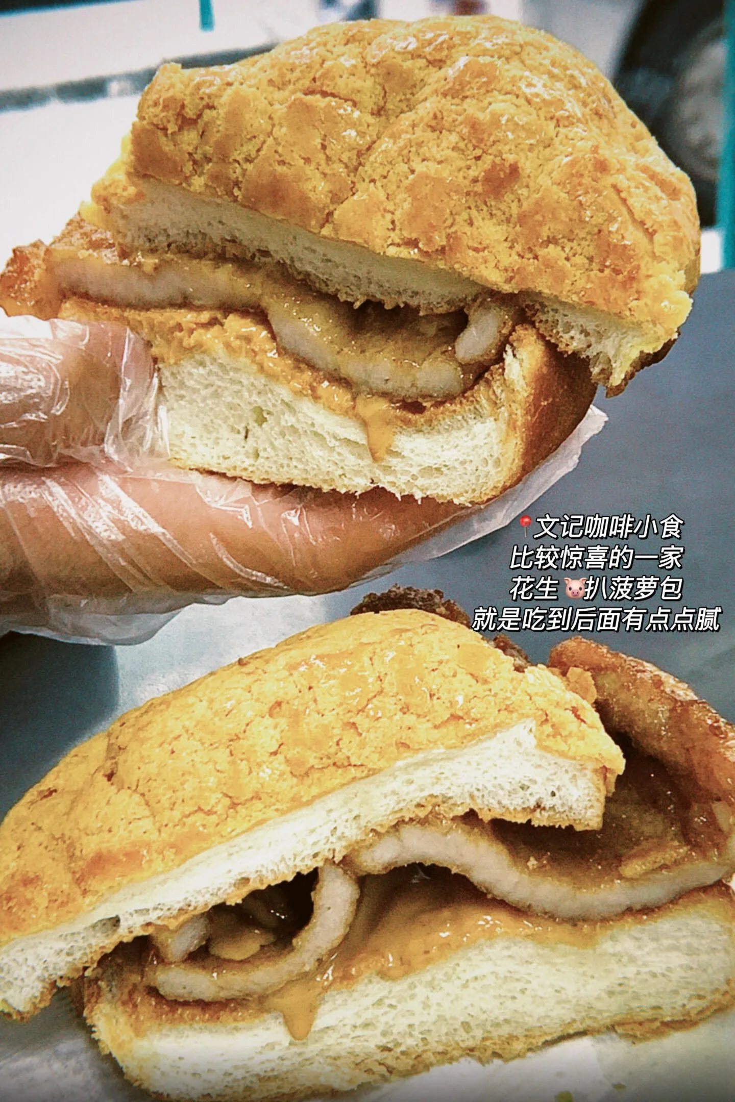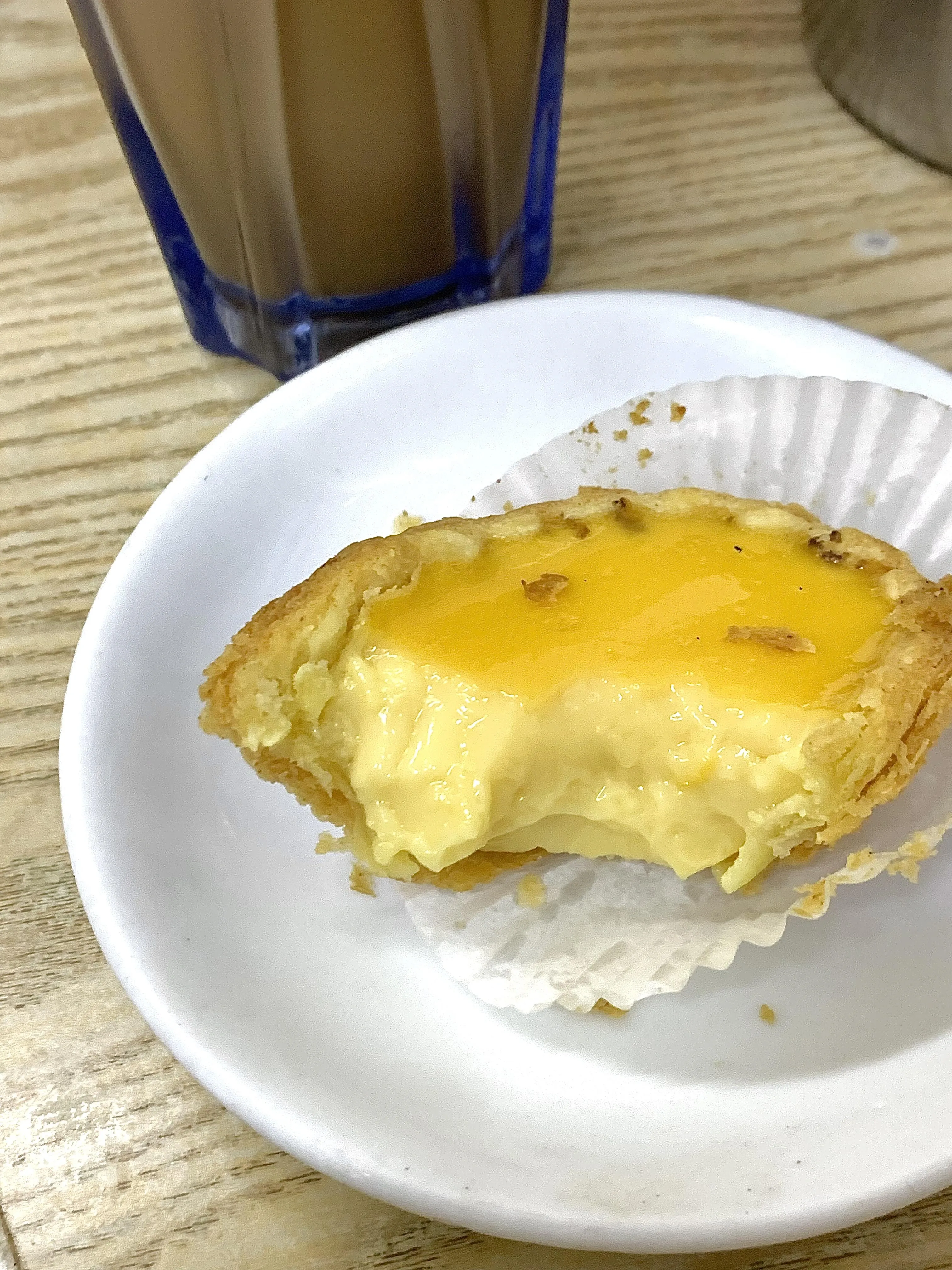 吴廷记的红豆饼值得一试,每个约7元人民币。文记咖啡小食的招牌“花生猪扒菠萝包”(25元人民币)第一口确实惊艳,但后来因为花生酱可能会觉得有点腻。沧州咖啡小食的蛋挞不错,但冻奶茶味道淡如水,有点令人失望。