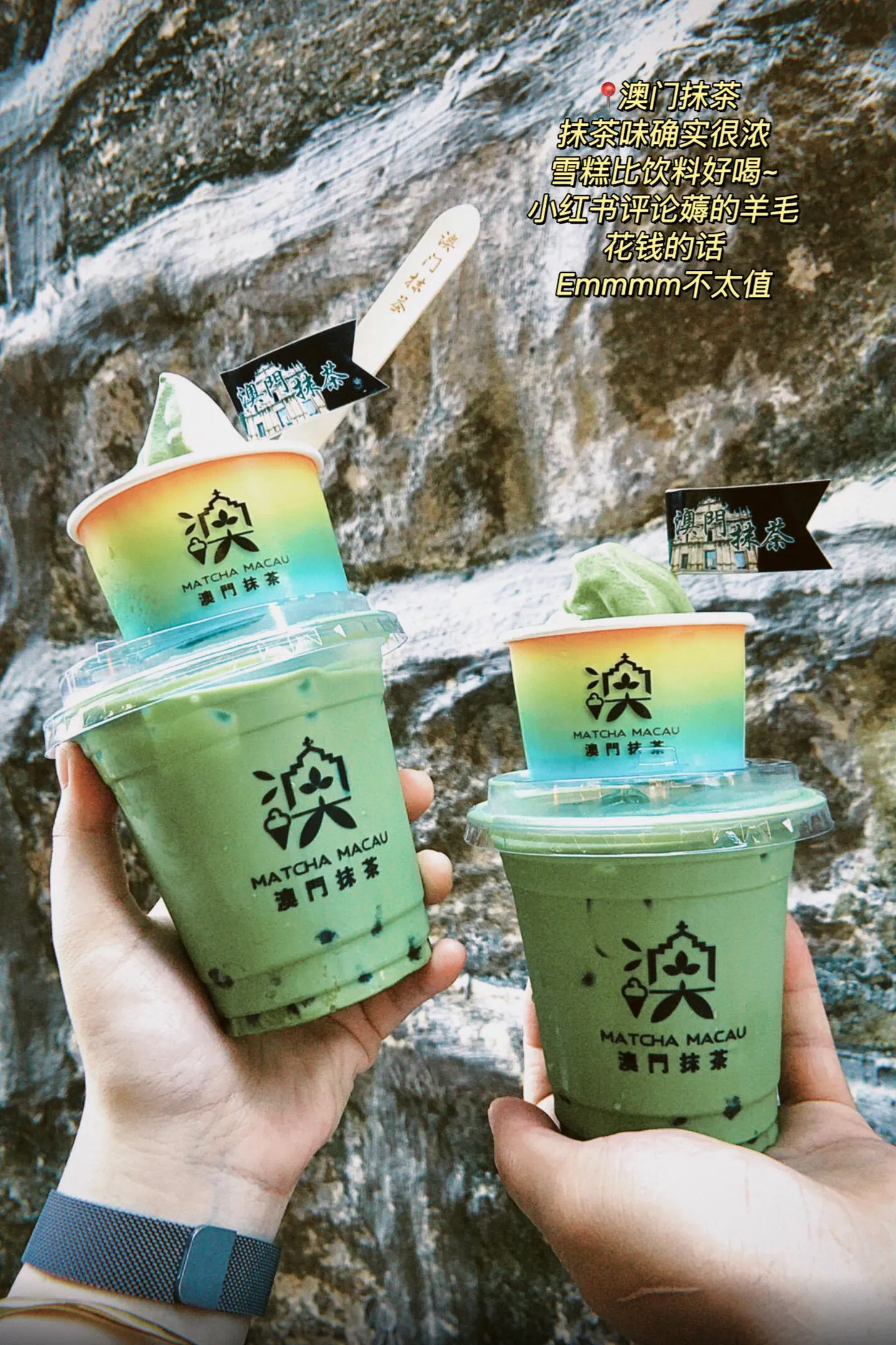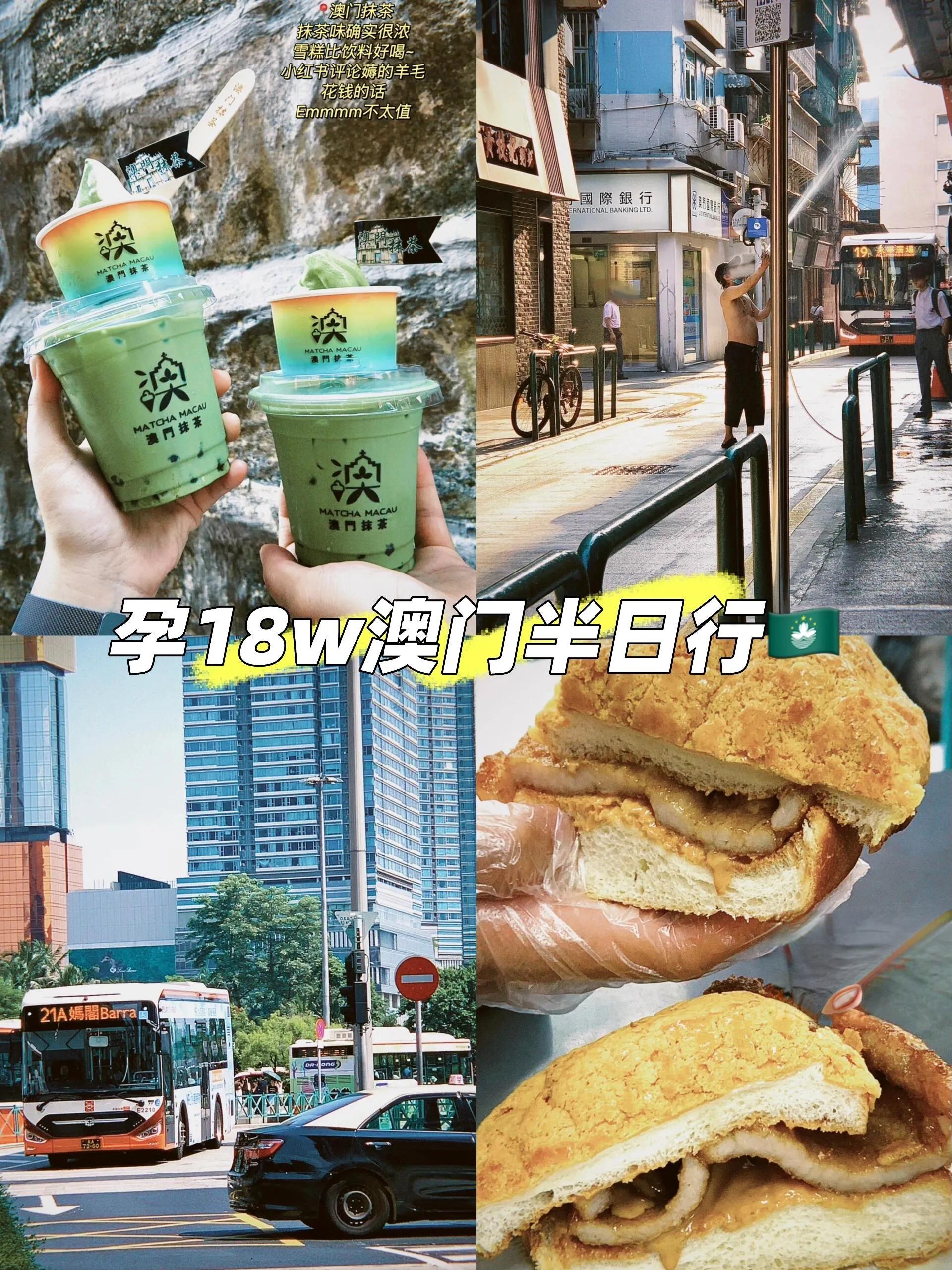 澳门抹茶店提供的抹茶味浓郁,相比之下雪糕更受欢迎。这几个地点步行距离都不远,最后从大三巴搭乘公交车返回关闸。