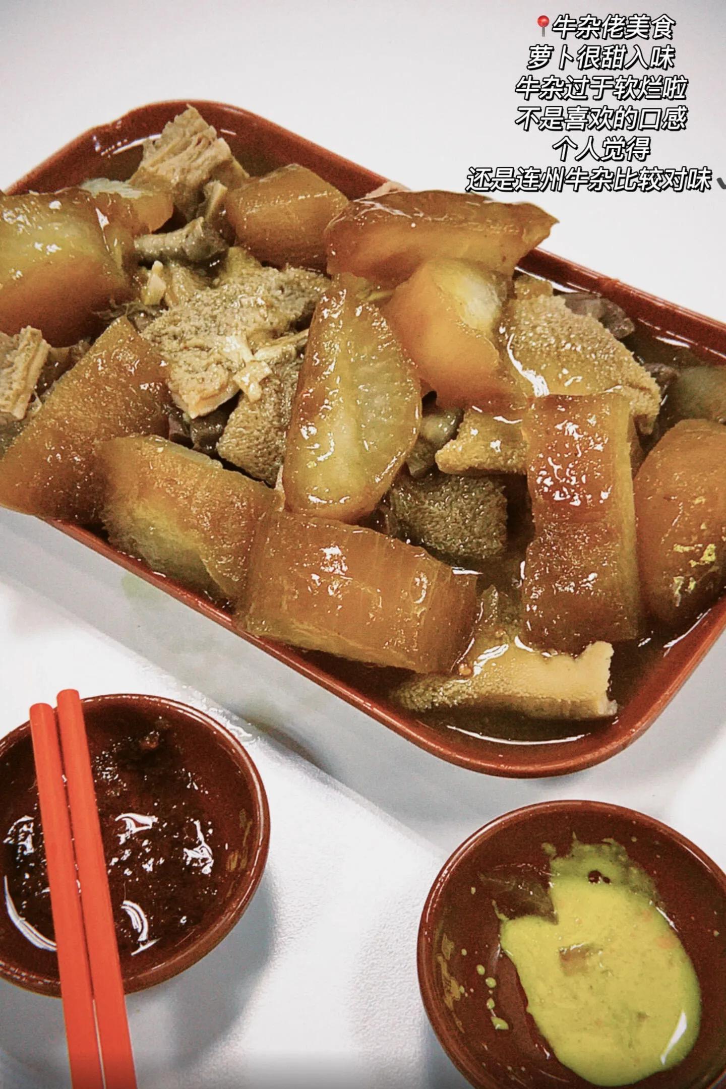接下来的美食之旅从下环街市开始。在牛杂佬美食品尝了分量十足的萝卜牛杂,价格65元人民币。虽然入味,但牛杂的口感过于软烂,不太符合个人喜好。