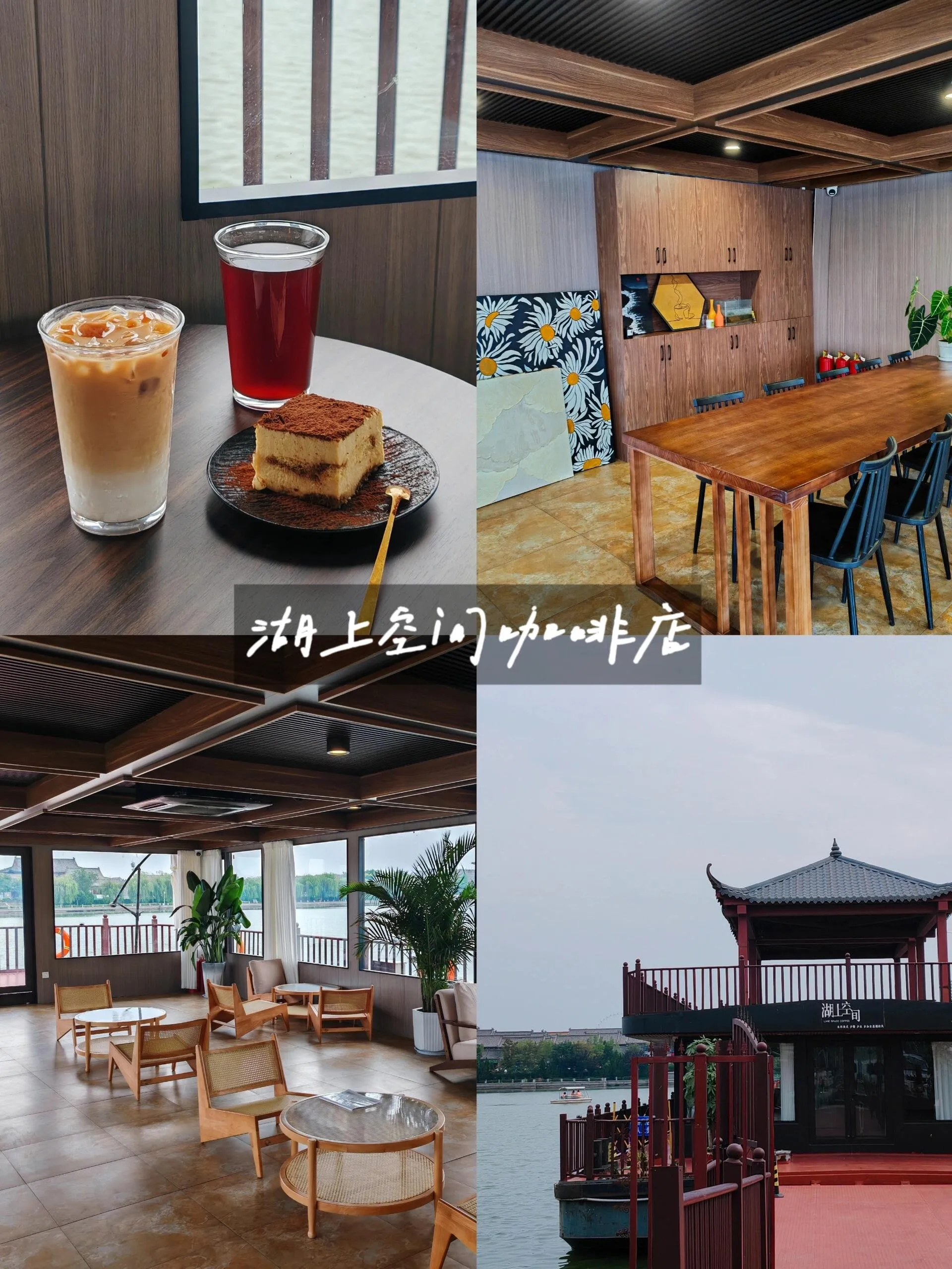 接着我们来到了东昌湖。 这个湖贯穿整个聊城,将老街和新区分开。我们在湖边漫步,来到了湖上空间咖啡馆。这家咖啡馆就是一艘船,虽然饮品和蛋糕种类不多,但坐在船上赏景的体验很棒。