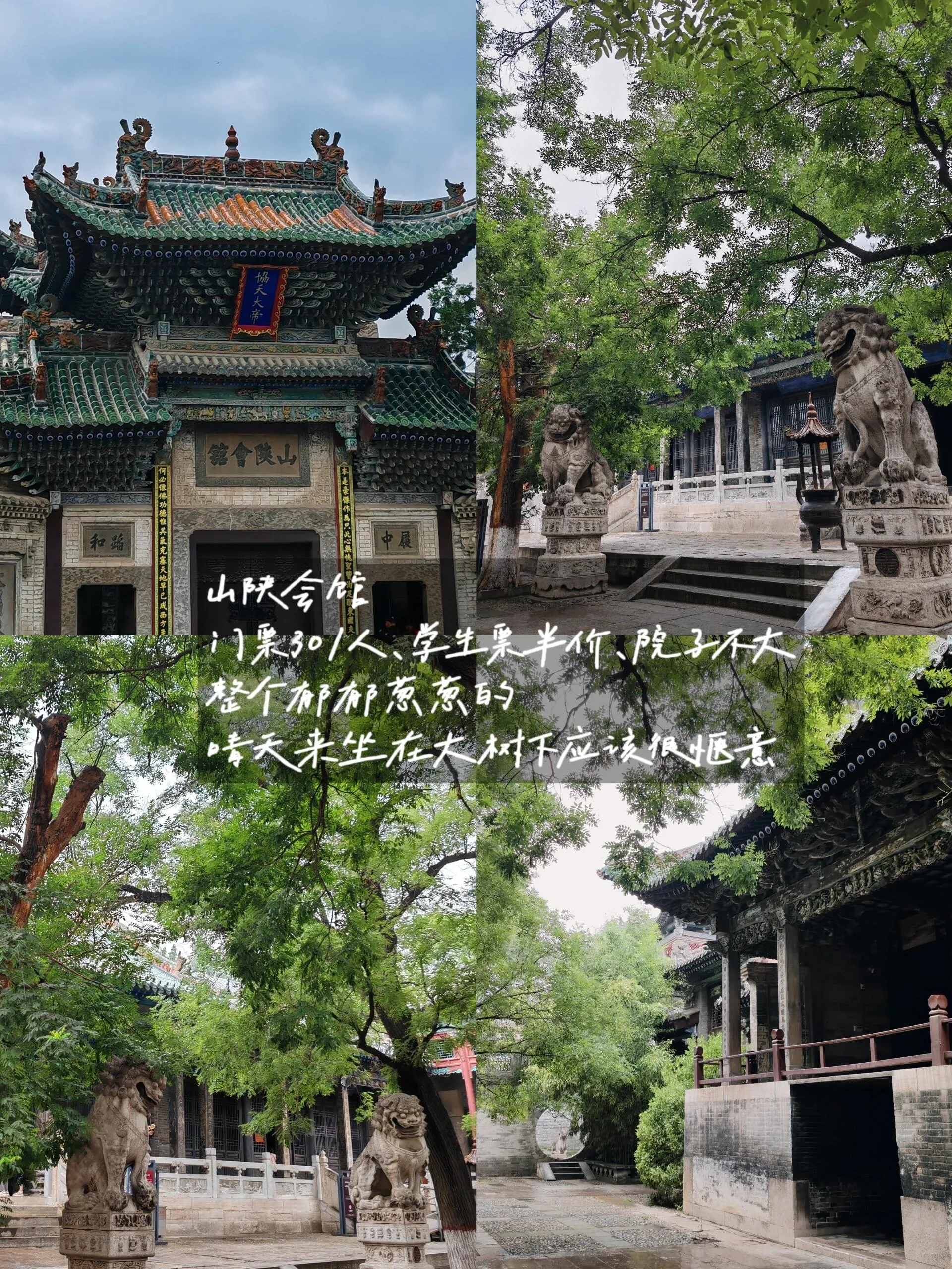 我们的第一站是山陕会馆。 门票30元,虽然会馆不大,但环境郁郁葱葱。即使是工作日的早晨9点多,也有二十几个游客。我们还蹭了一会儿导游的讲解。