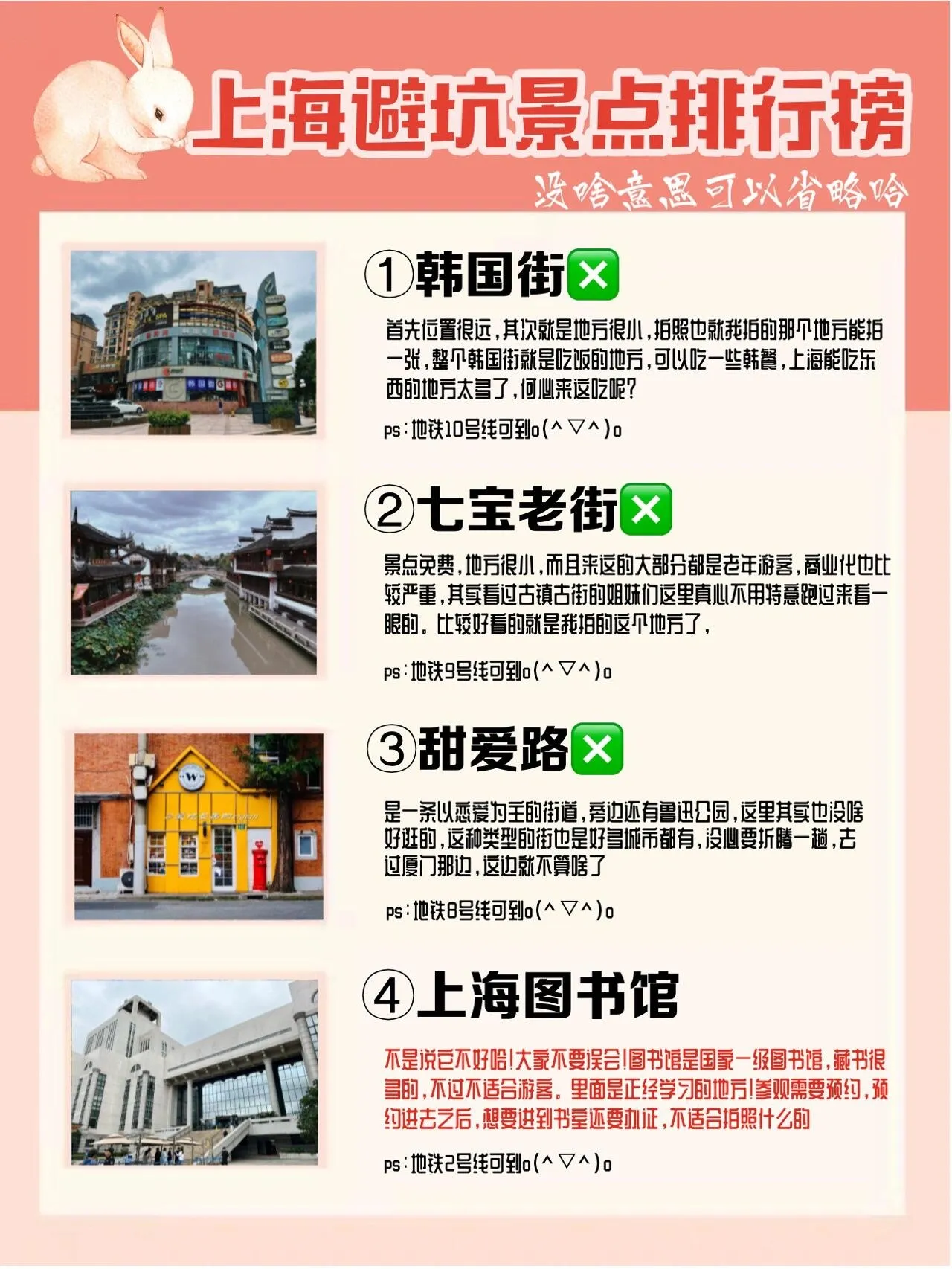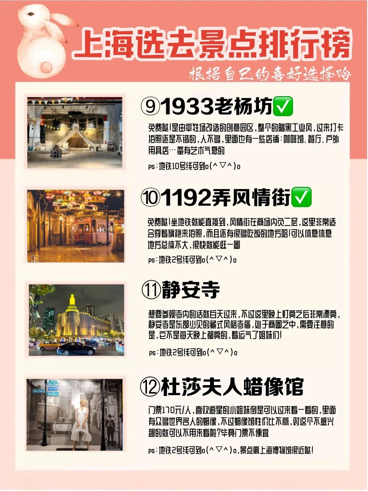 PS:不感兴趣的景点可以略过。除此之外还有m50创意园、无界美术馆等可选。