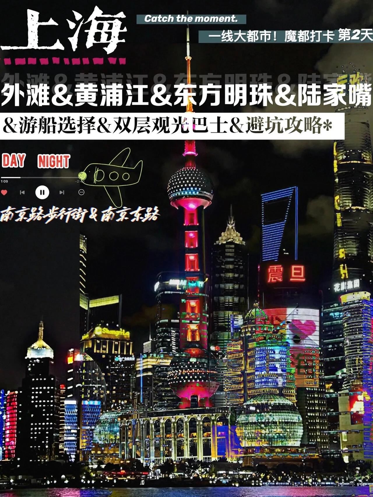 适合夜游的景点:外滩、黄浦江游船、露天双层巴士、淮海中路、豫园、静安寺