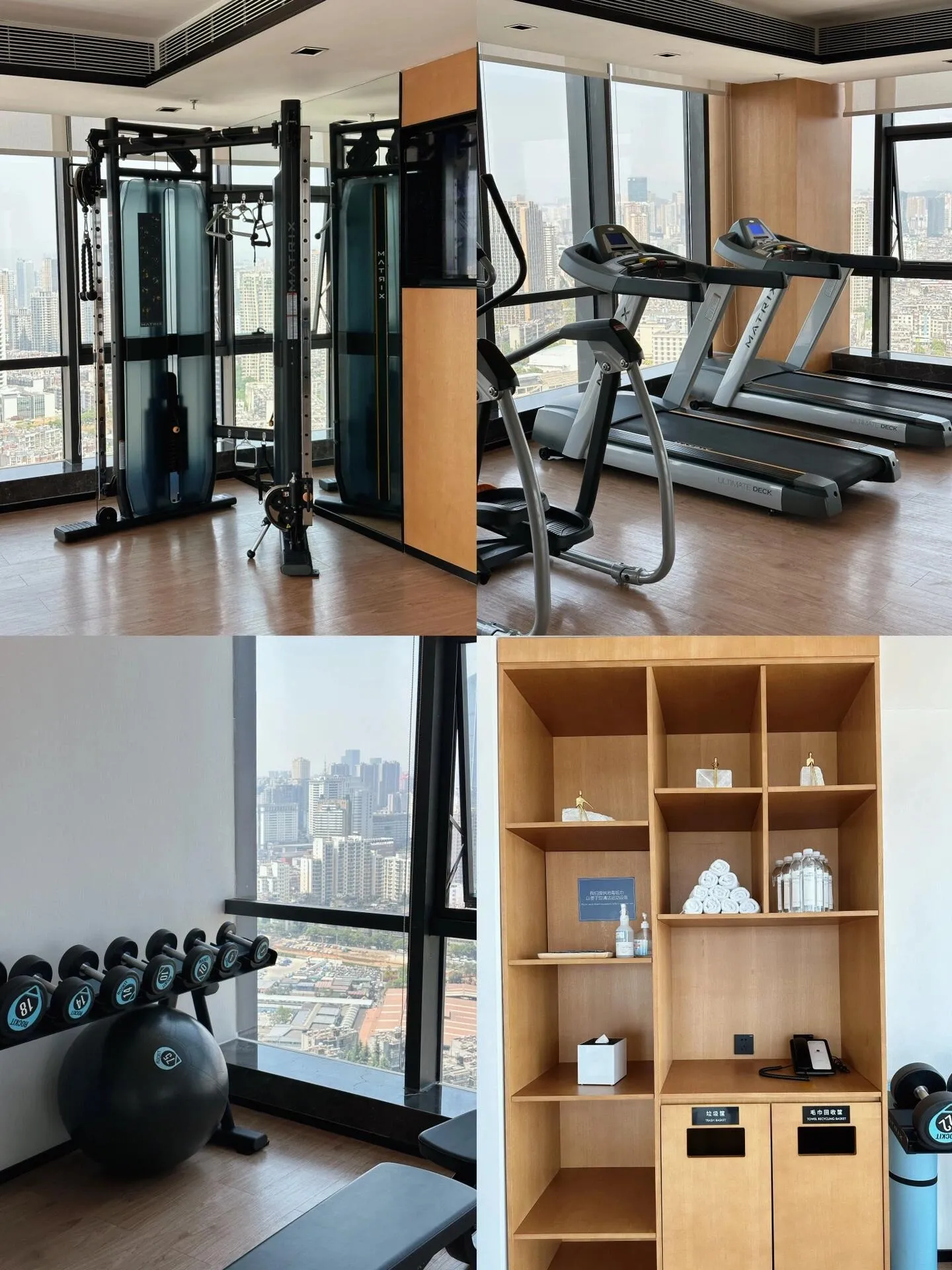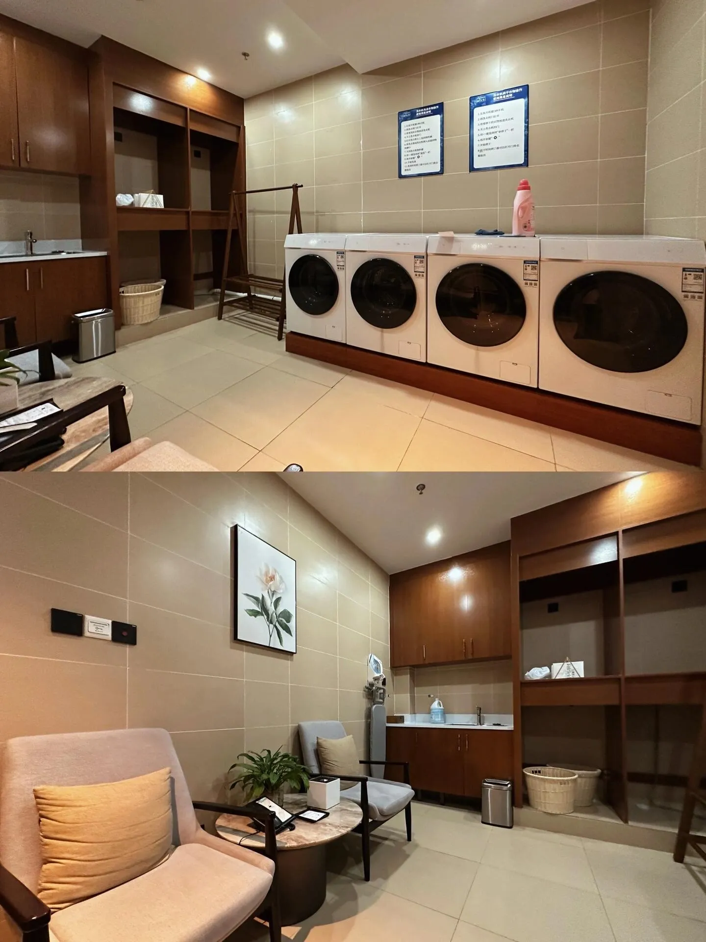 作为一家定位简约商务的酒店,新迎万枫在细节上也很贴心。 房间门外设有自助洗衣房,对长期出差的旅客来说非常方便。早餐厅位于大堂同层,东侧高层视野,还能品尝到大理特色美食乳扇。健身房虽然不大,但设备齐全,同样拥有绝佳景观。