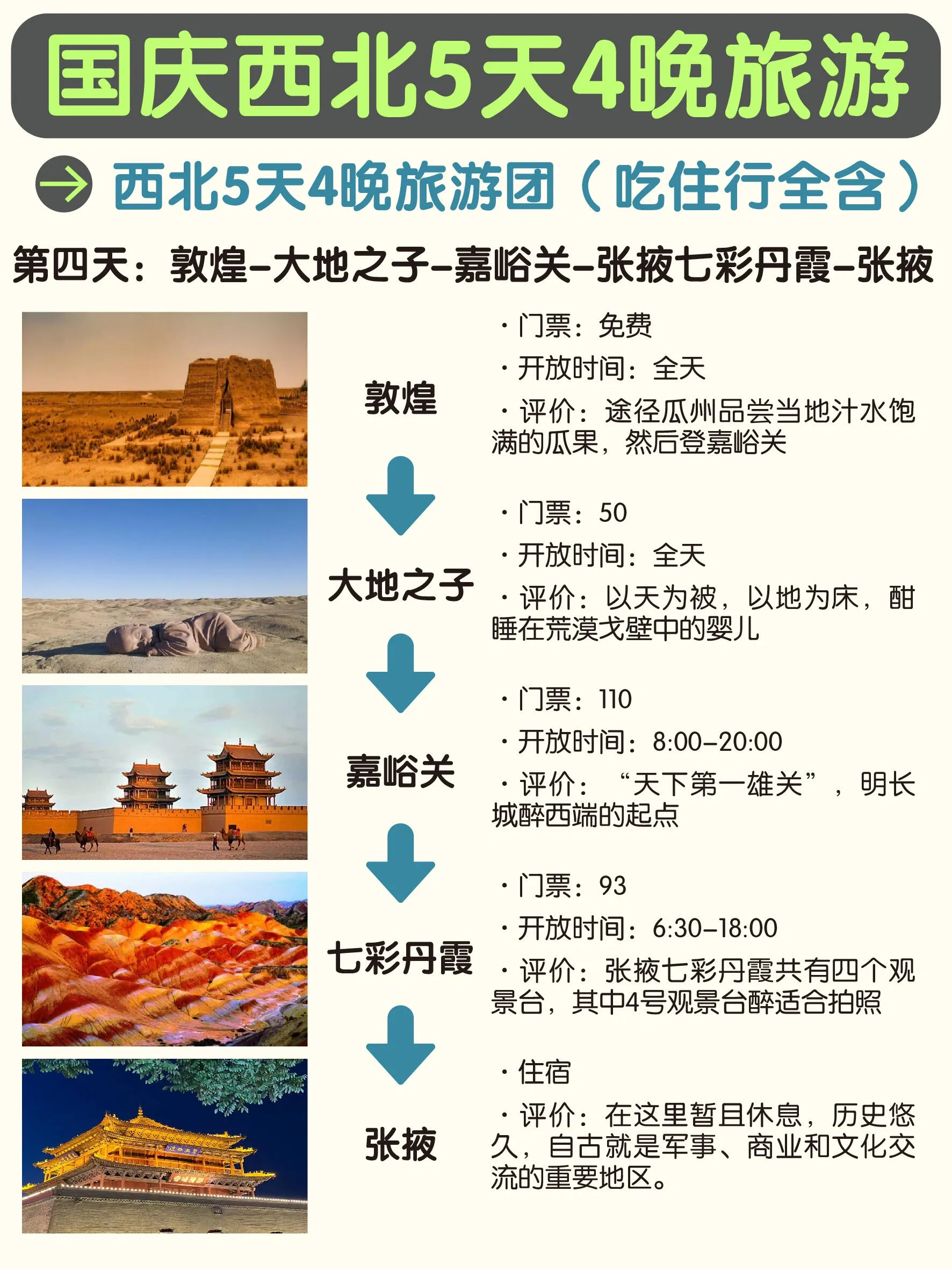 第四天:离开敦煌,参观大地之子景区,游览嘉峪关,最后欣赏张掖七彩丹霞。
