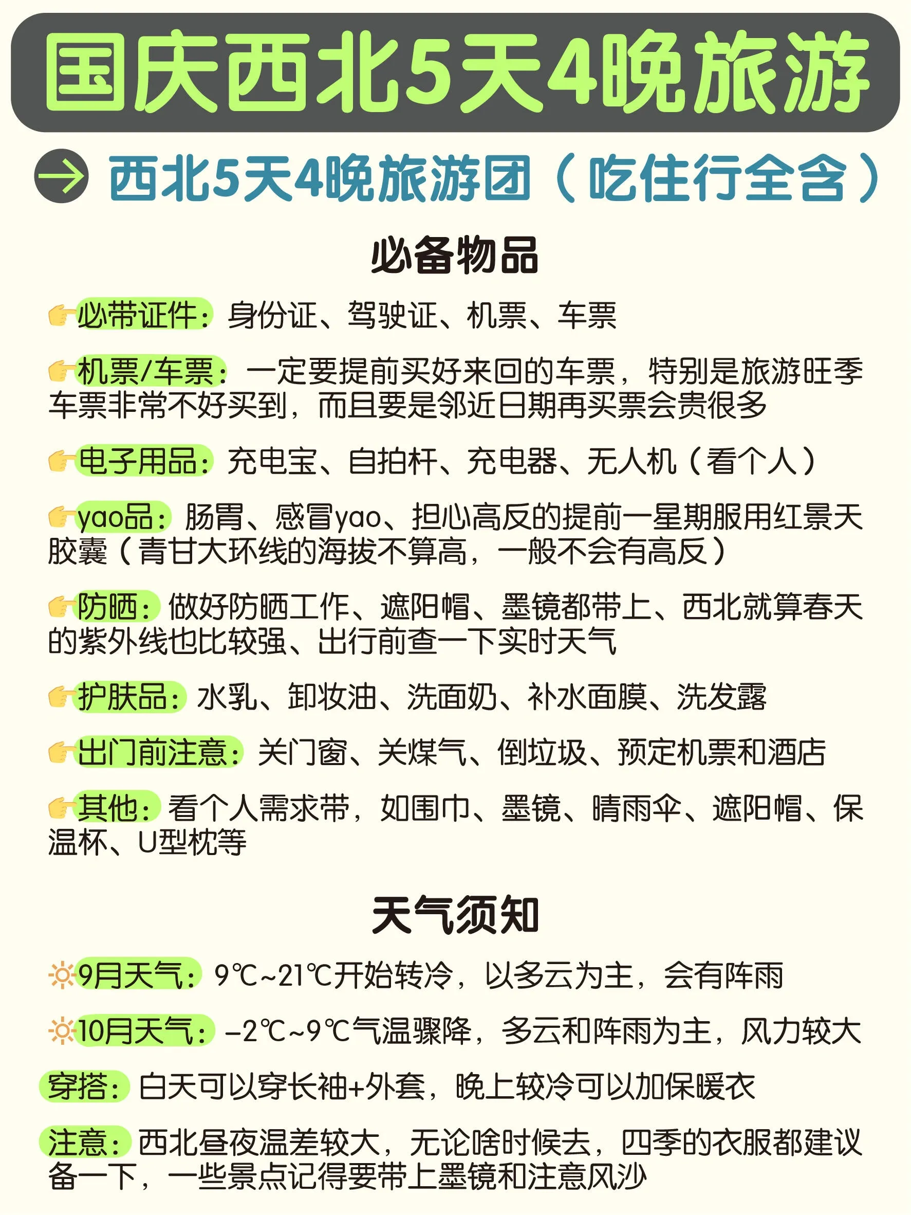 出行准备方面,除了身份证等证件外,还需要准备充足的电子设备和适合的衣物。由于西北地区昼夜温差大,建议携带保暖冲锋衣和舒适的徒步鞋。防晒用品也是必不可少的,高倍防晒霜和墨镜都要带上。此外,一些常用药品如感冒药、肠胃药和高原反应药也要准备。