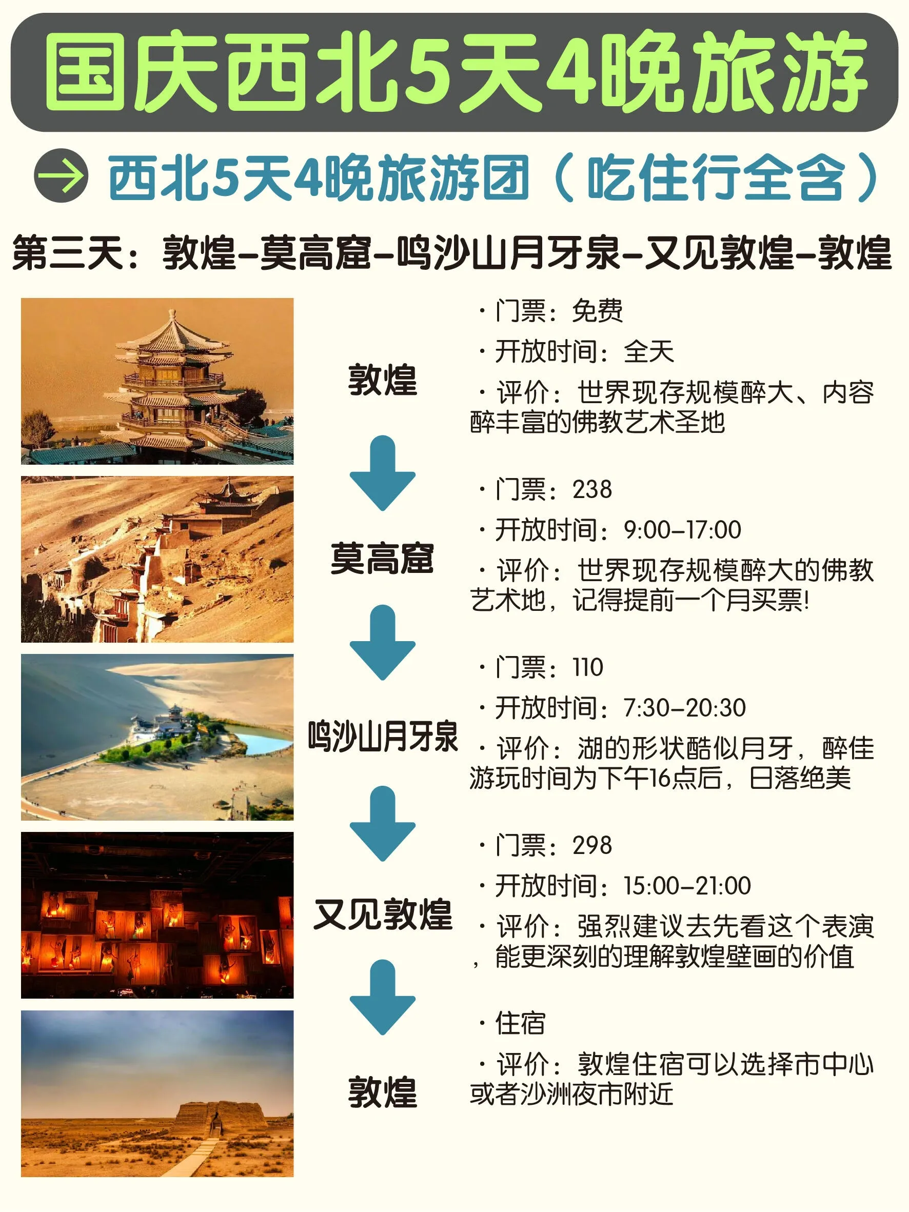 第三天:在敦煌游览莫高窟、鸣沙山月牙泉,晚上观看“又见敦煌”演出。