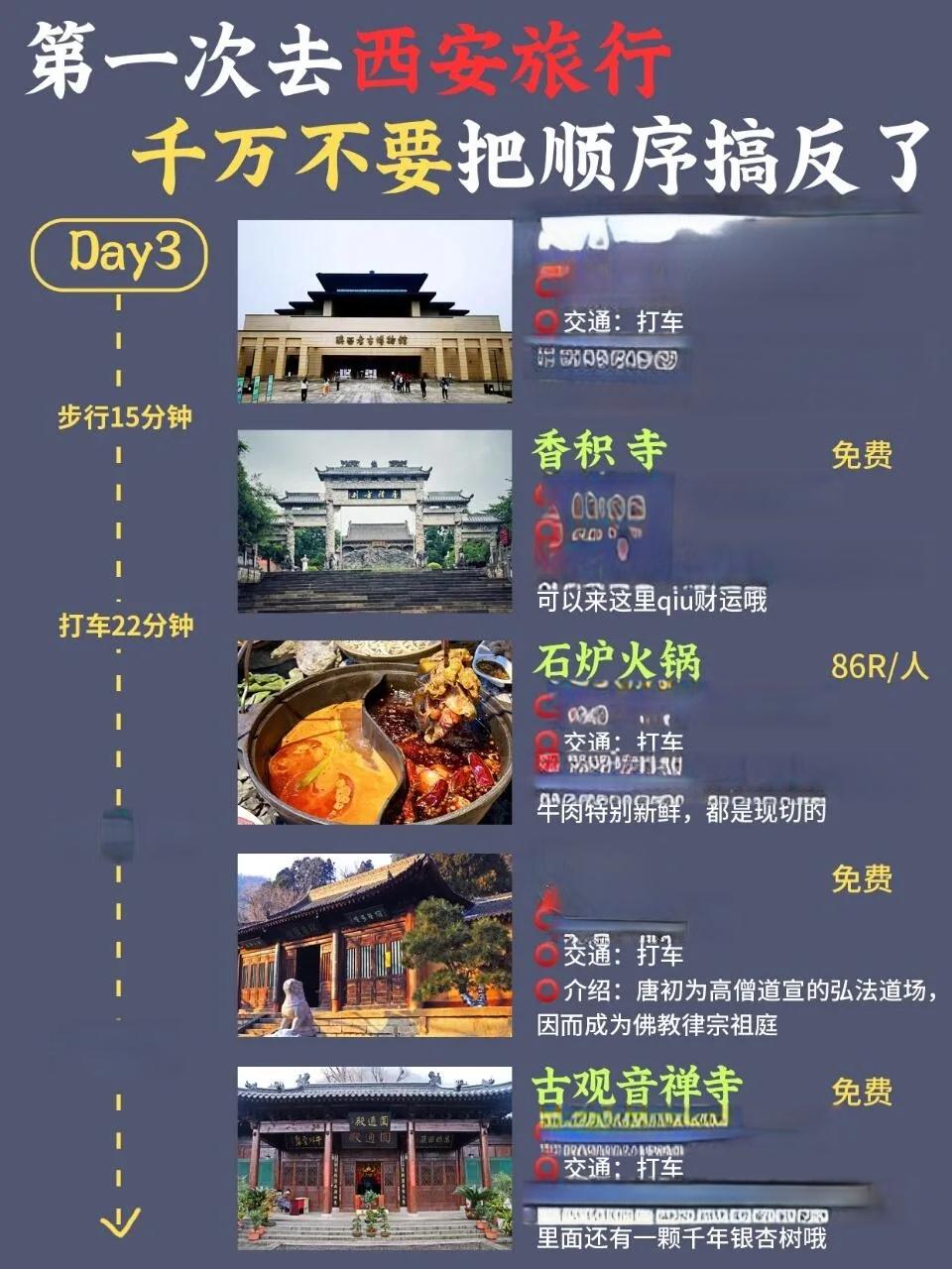 陕西考古博物馆 → 香积寺 → 石炉火锅 → 净业寺 → 古观音禅寺