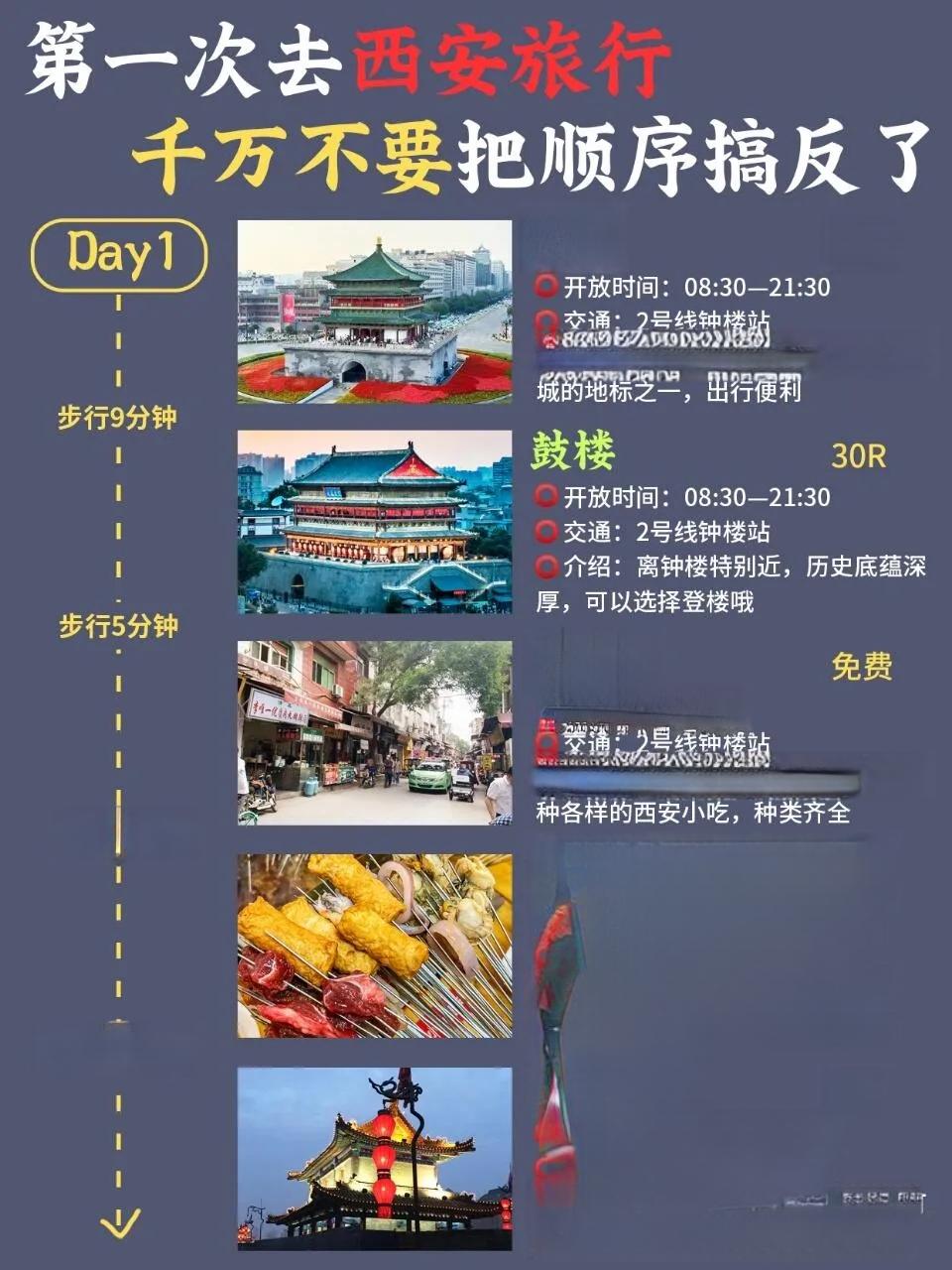 钟楼 → 鼓楼 → 回民街 → V.辣串串(清真) → 西安城墙