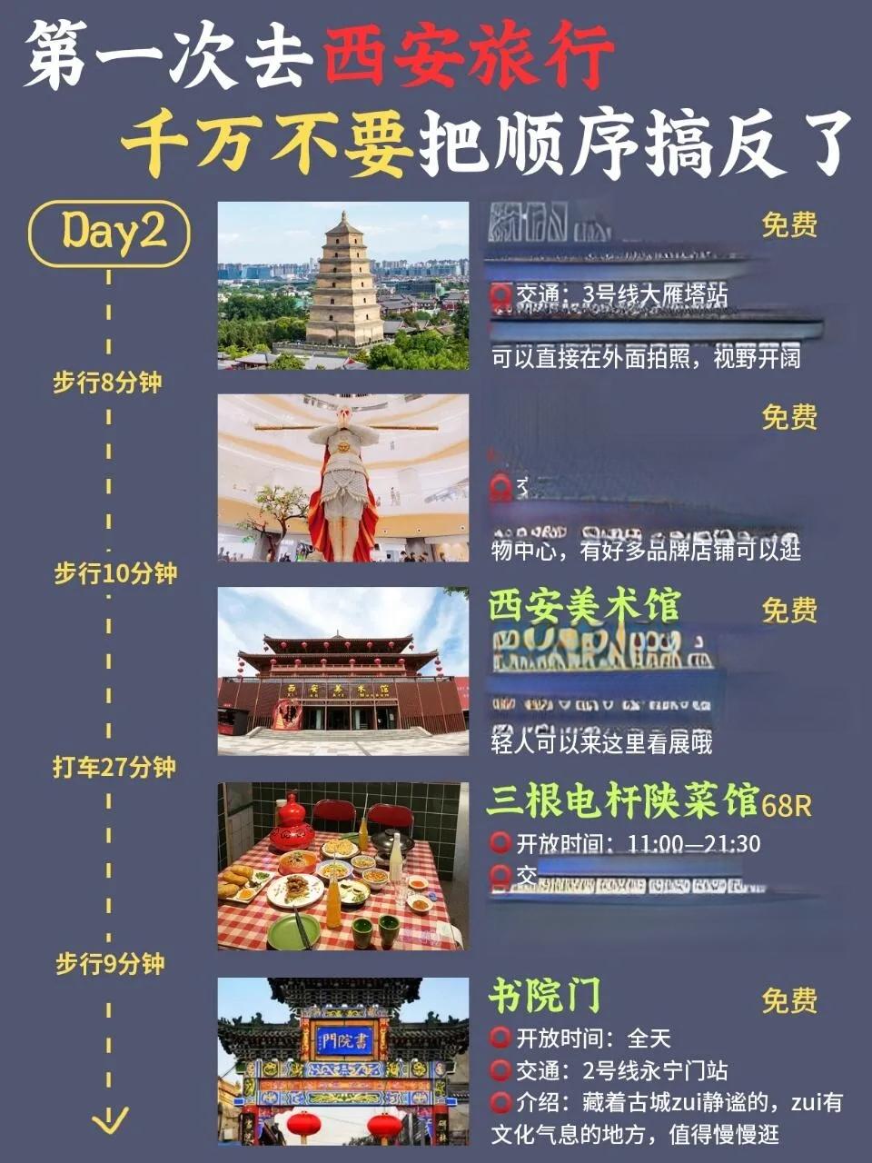 大雁塔 → 大悦城 → 西安美术馆 → 三根电杆陕菜馆 → 书院门