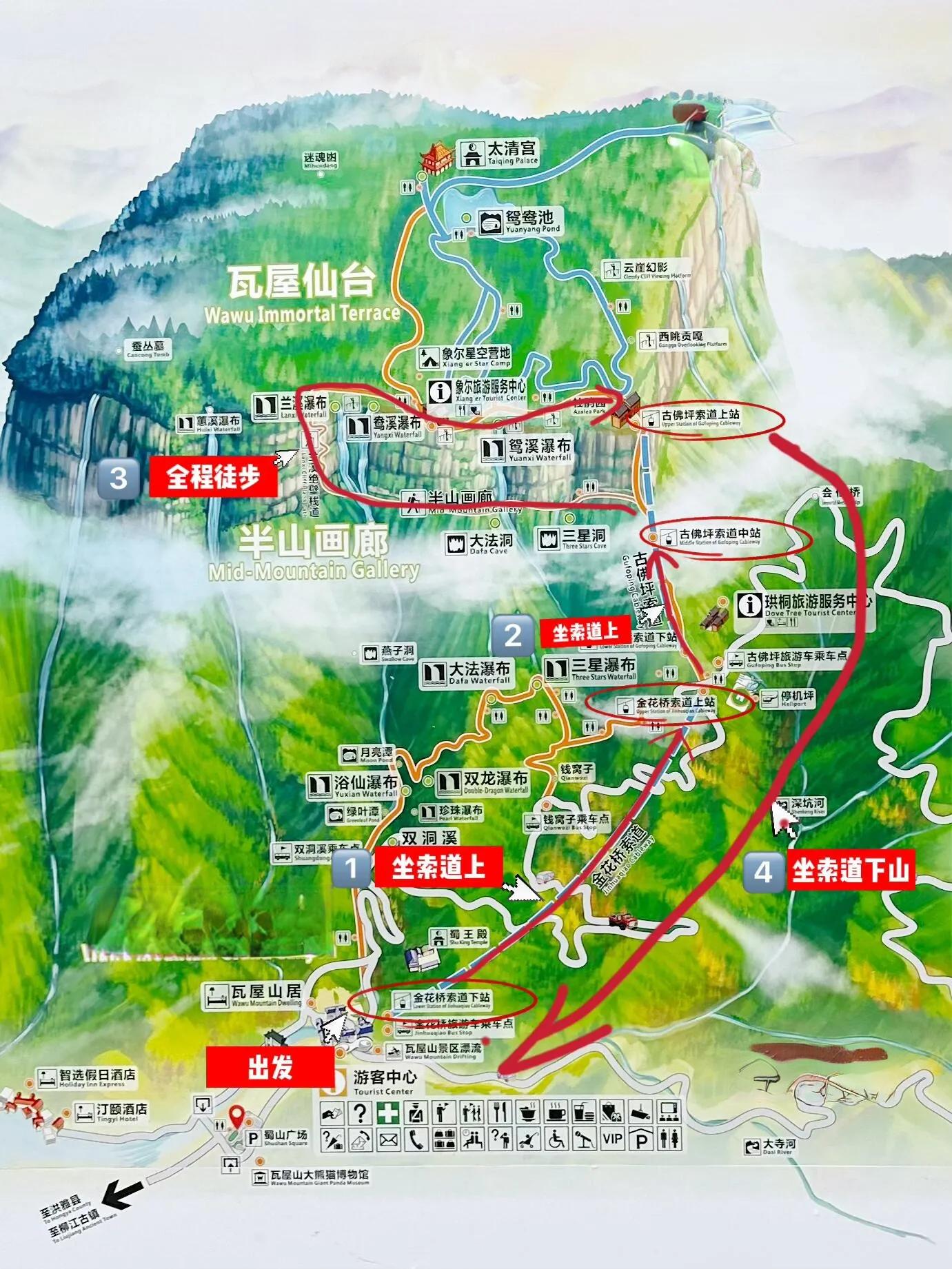 瓦屋山景区特别大,景点也比较多。 今天带娃一起徒步,考虑到小朋友的体力和下山时间, 我们选择了最为便捷的一条线路。