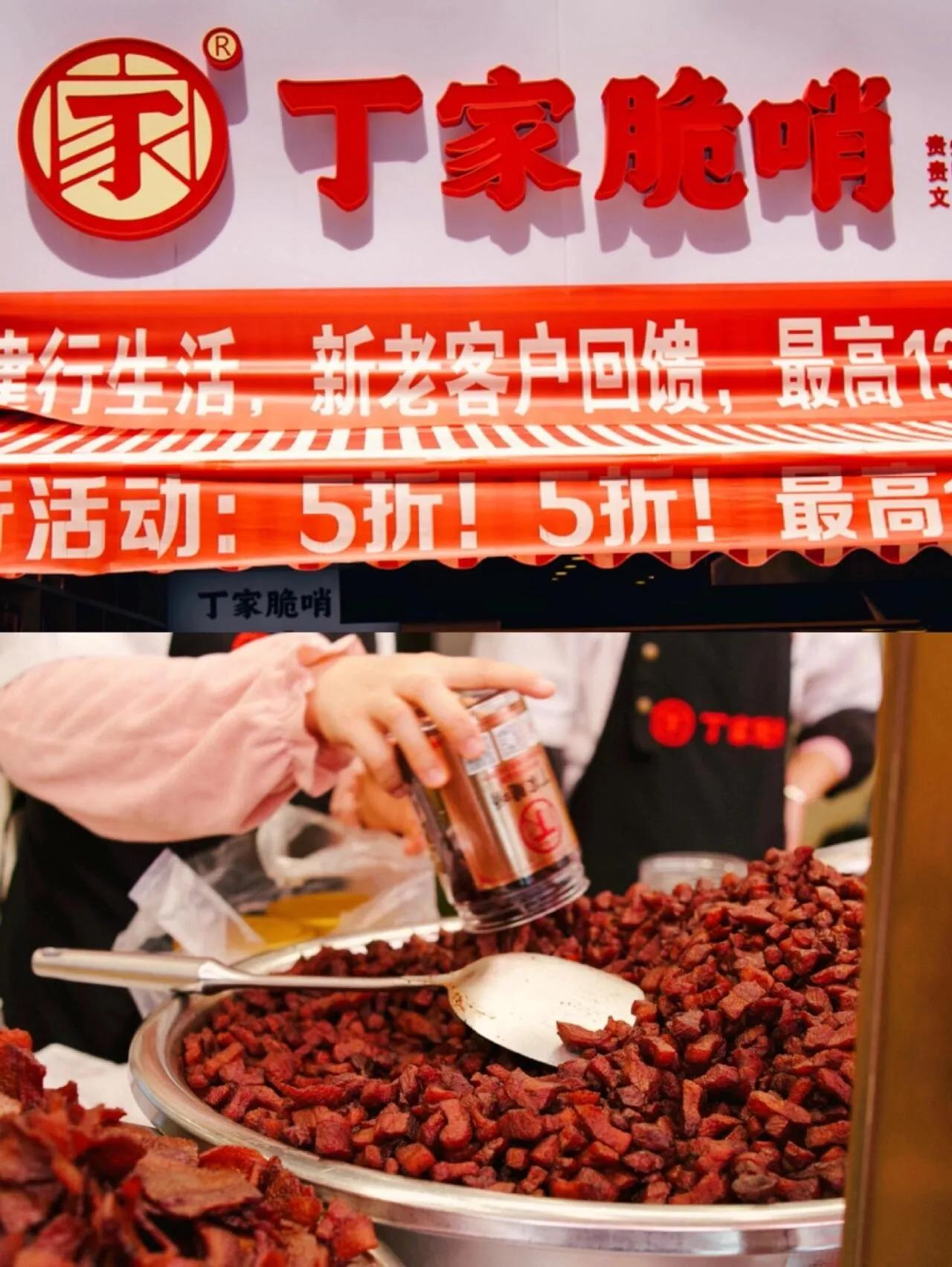 脆哨是炸得酥脆的肉臊子,也是非物质文化遗产美食,是贵阳美食的灵魂伴侣!各种粉面、炒菜、小吃都要放,当零食吃也很棒。丁家在贵阳家喻户晓,40多年的老字号,曾上过《风味原产地·贵阳》节目。他们坚持当天做当天卖,100斤猪肉仅出10斤脆哨,月销量超过10几吨,可见其受欢迎程度。