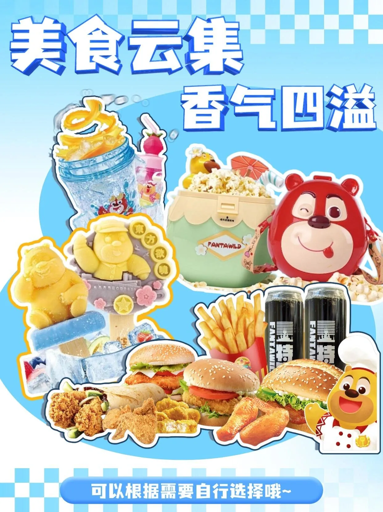 园区内设有多个美食区域,如国味坊、熊记汉堡等,提供各种美食、甜品饮料和特色小吃。
