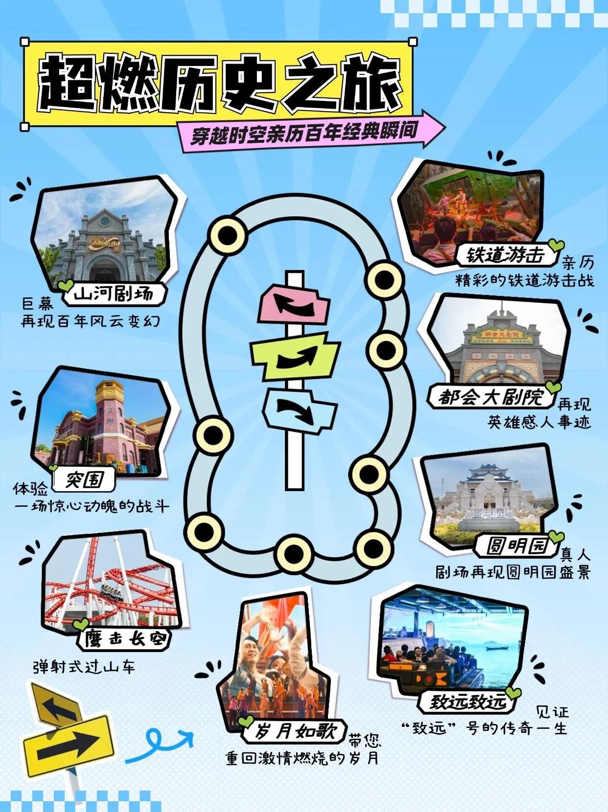 刺激项目中,鹰击长空、海盗船、火线追击和空间站都是不容错过的选择。表演类项目如圆明园、岁月如歌、山河剧场和都会大剧院则带来震撼的视听体验。