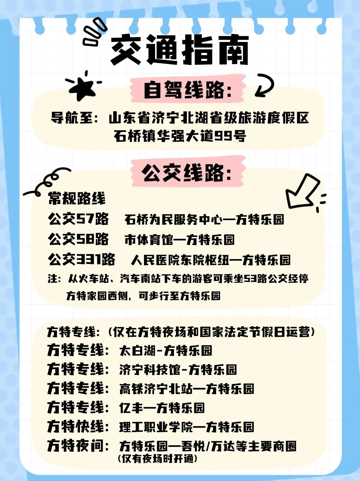 交通方面,园区位于山东省济宁北湖省级旅游度假区石桥镇华强大道99号,可根据个人情况选择合适的交通方式前往。