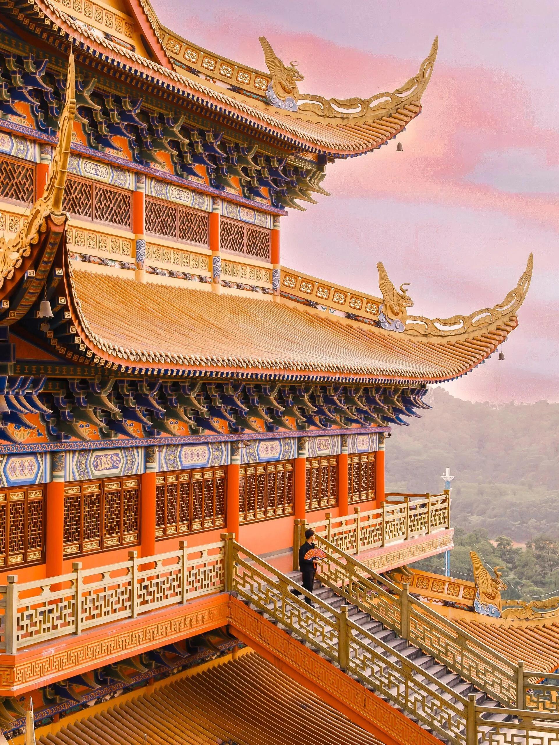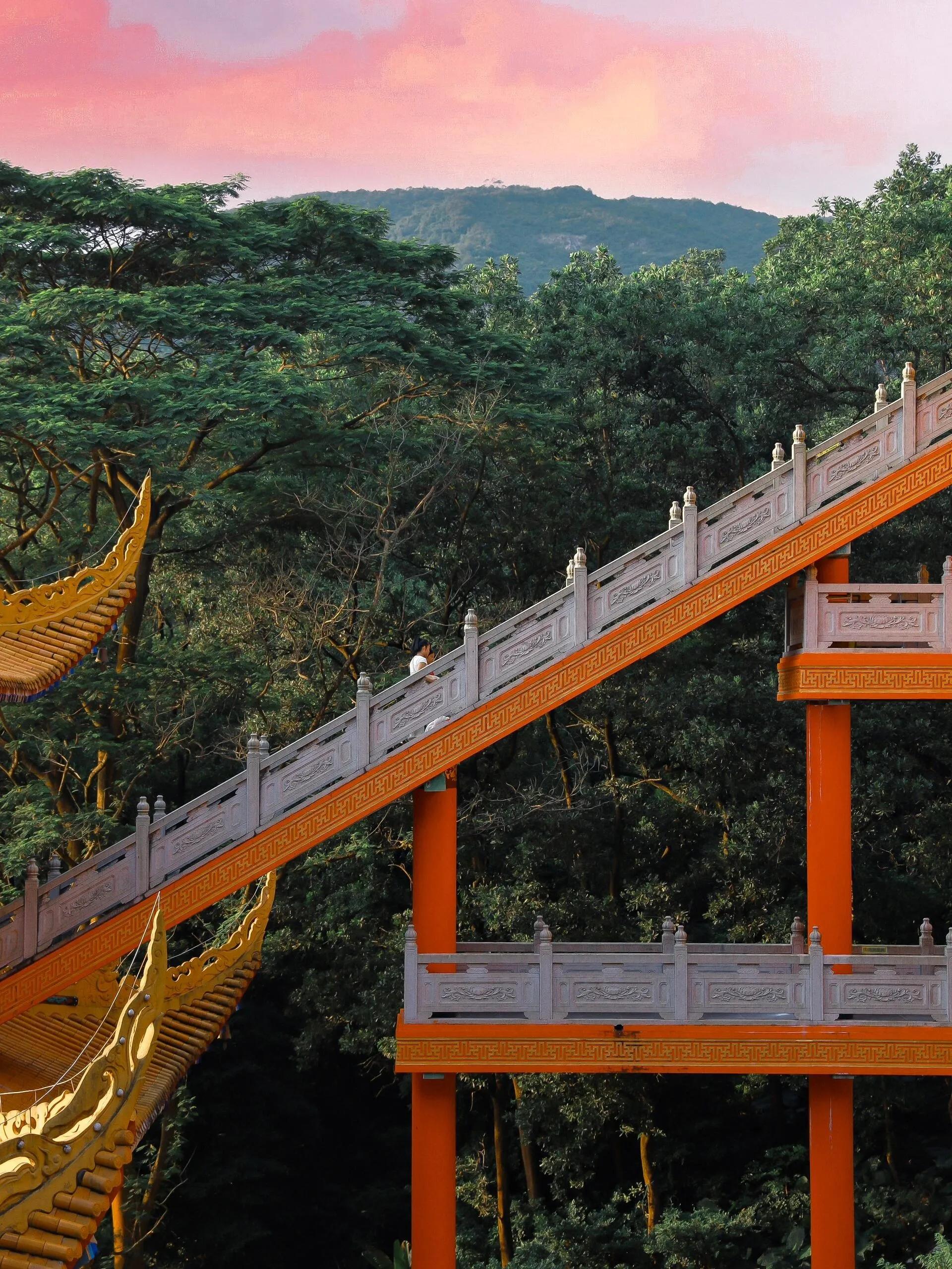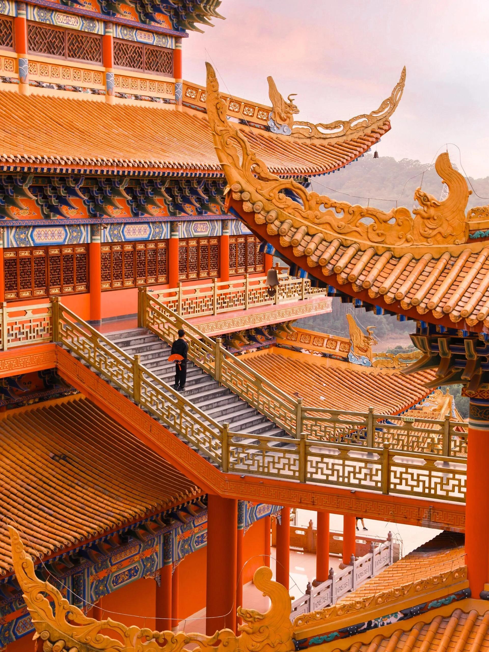 东莞市大岭山森林公园内的观音寺是一个令人惊叹的景点,拥有300多年的悠久历史。这座庙宇高达19层,令人意外的是还配备了电梯,方便游客上下游览。