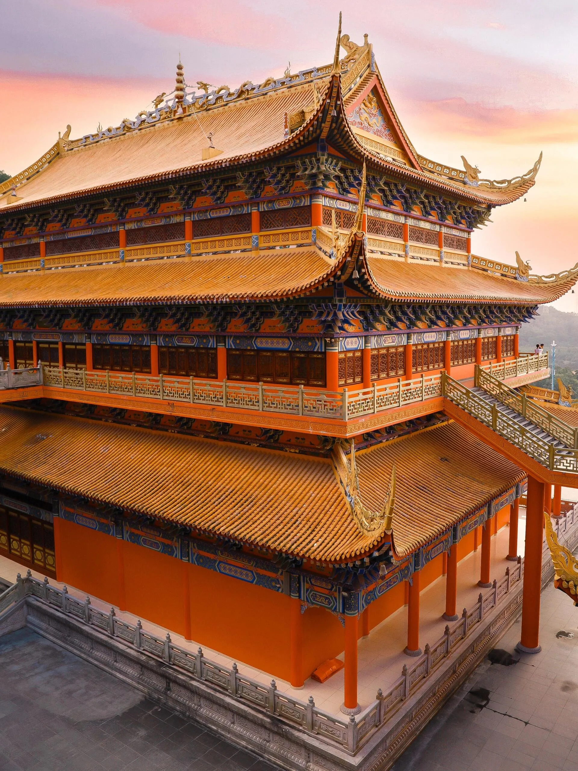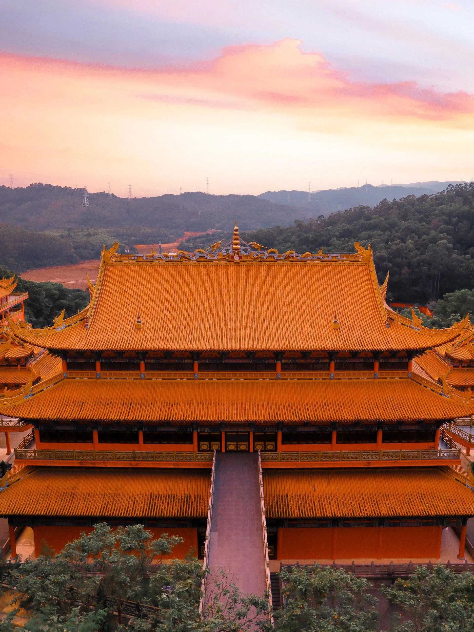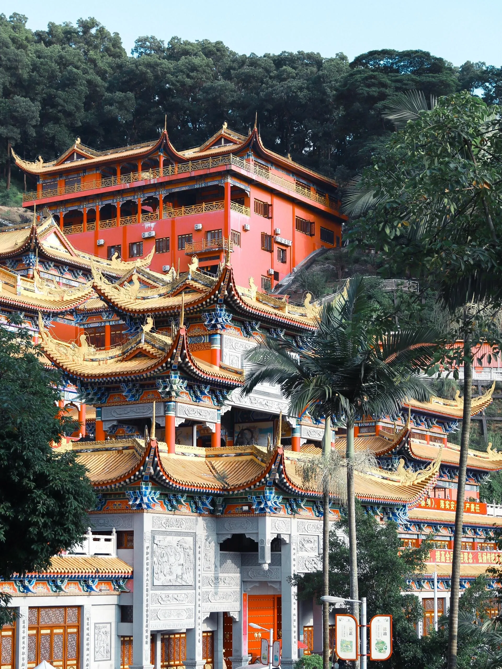 东莞市大岭山森林公园内的观音寺是一个令人惊叹的景点,拥有300多年的悠久历史。这座庙宇高达19层,令人意外的是还配备了电梯,方便游客上下游览。