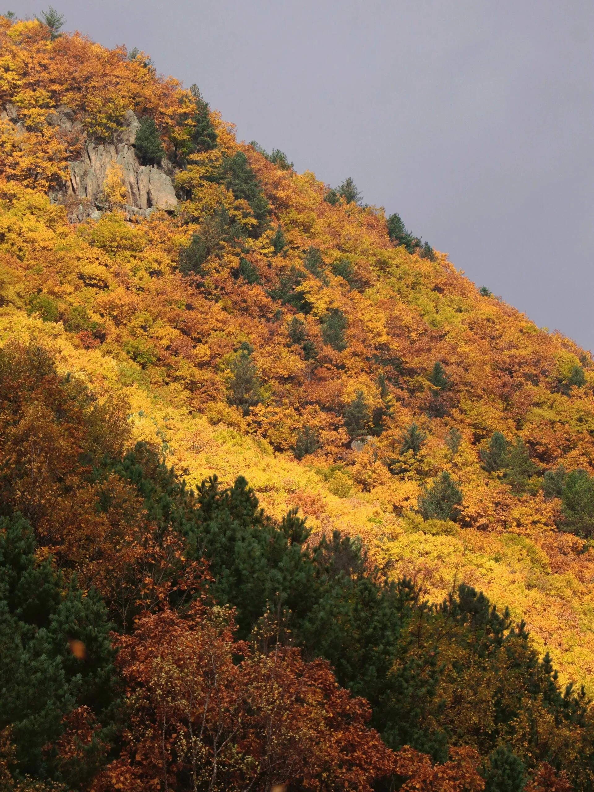 这里没有摩肩接踵的游客群,也无堵车的喧嚣。目之所及只有宁静的五花山树林和金黄的稻田。当秋风轻拂过稻田与树林,绚丽的色彩渲染了整片天地。连绵起伏的五花山、金灿灿的落叶大道、风姿优雅的白桦林、热烈似火的红叶,以及生机勃勃的森林,构成了一幅层林尽染的诗意画卷,与稻田泛金的温柔相得益彰。