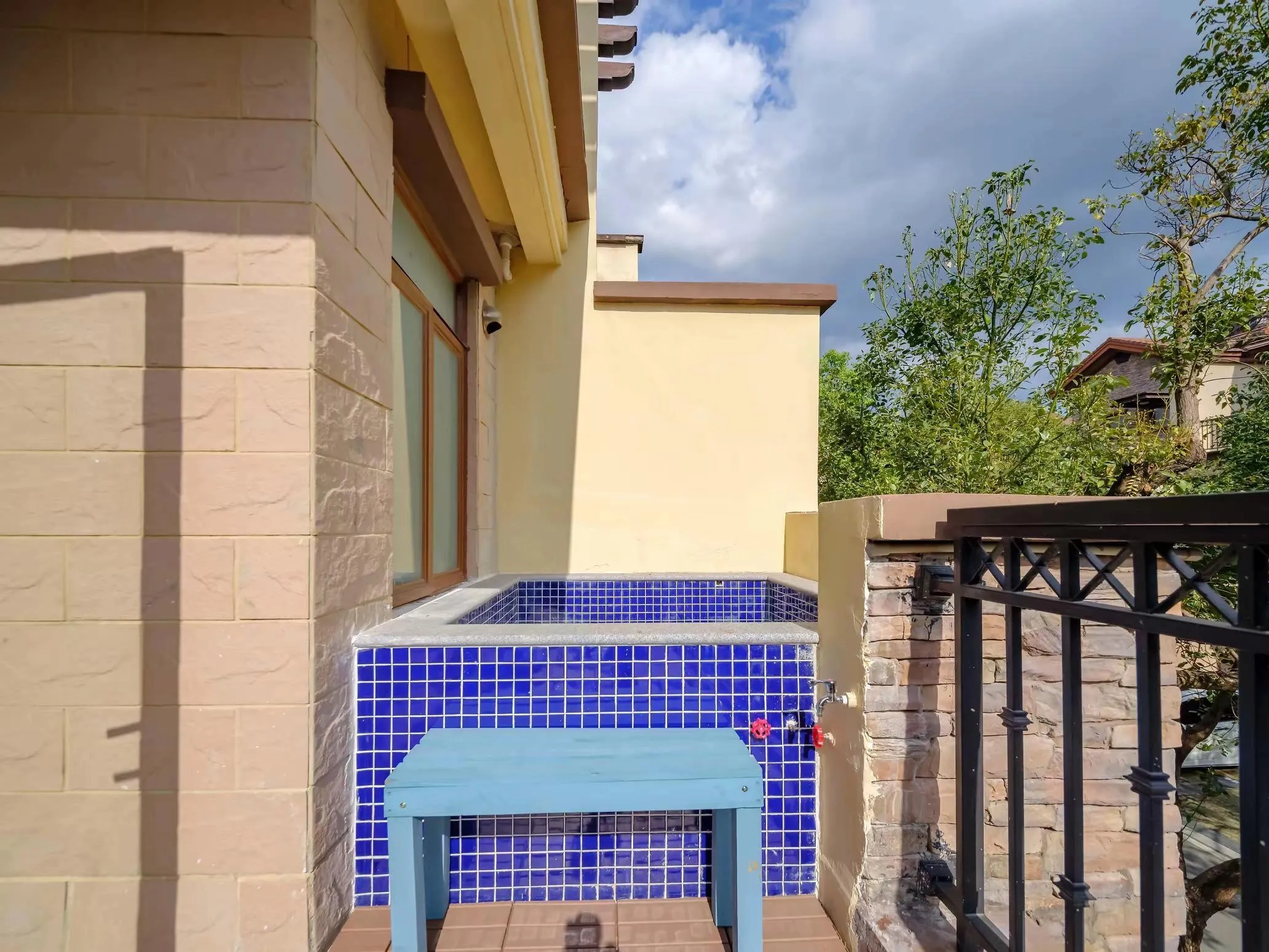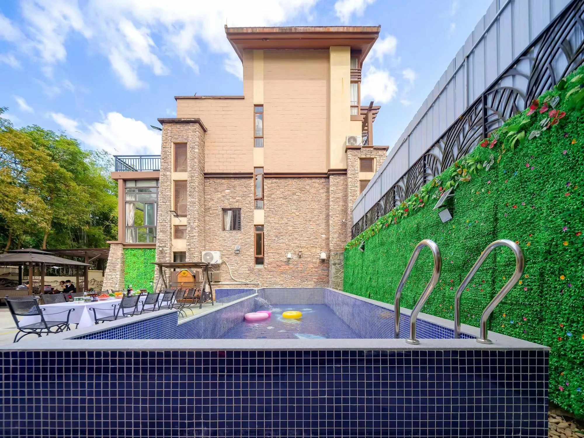 别墅自带的温泉池是最大亮点。 水温适中,泡在里面可以让疲惫一扫而空。配合香氛精油,泡澡的同时还能享受芳香疗法,堪称身心灵的极致享受。