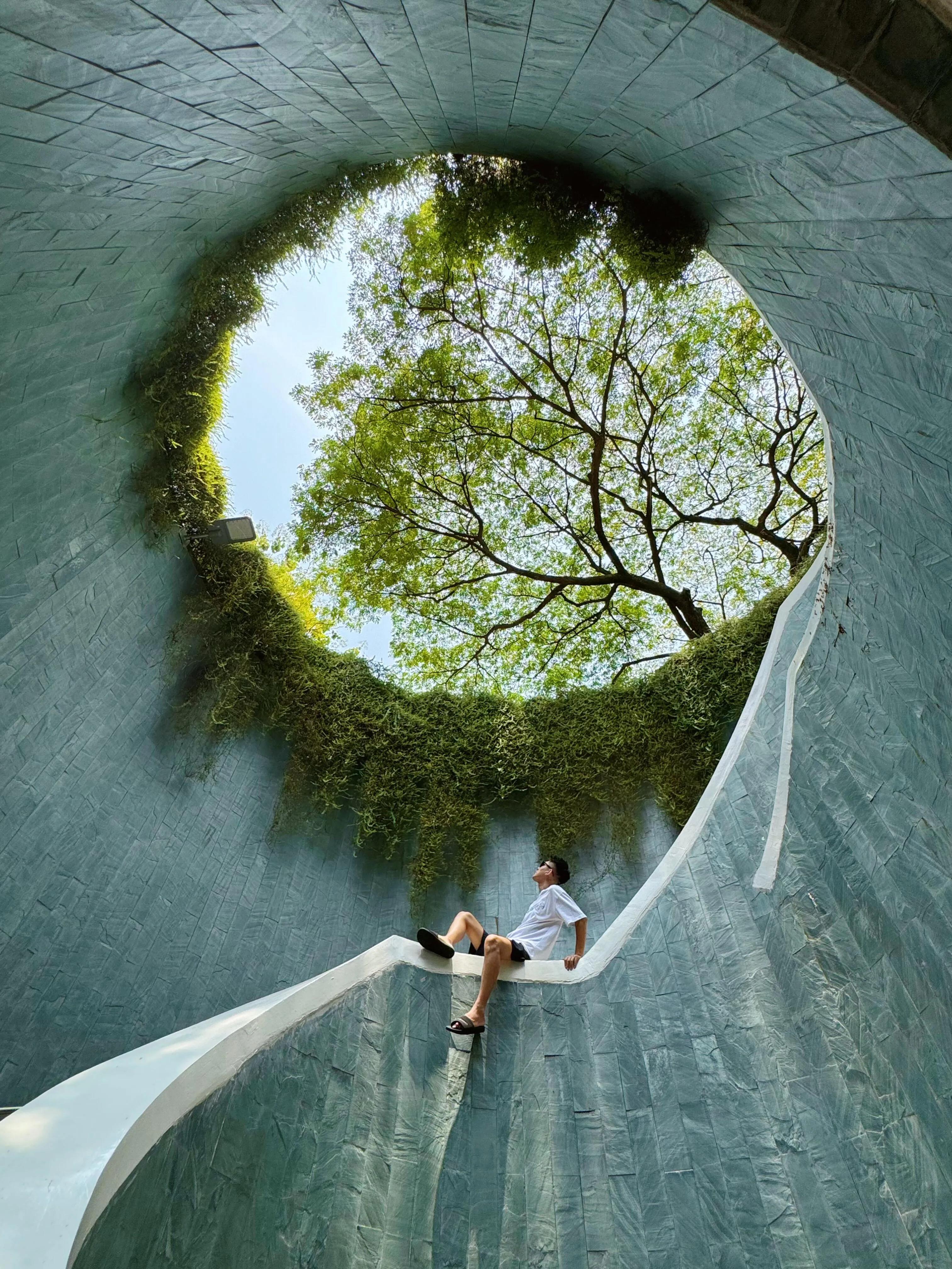 对于喜欢拍照的游客来说, 福康宁公园的网红树洞是不容错过的打卡地。 导航到Fort Canning Tree Tunnel就能找到这个拍摄绝佳地点。不过需要注意的是,由于人气较高,可能需要排队等候约一个小时。为了拍出最佳效果,建议使用苹果原相机的0.6超广角模式进行拍摄,这样可以更好地捕捉树洞的全貌,拍出令人惊艳的照片。