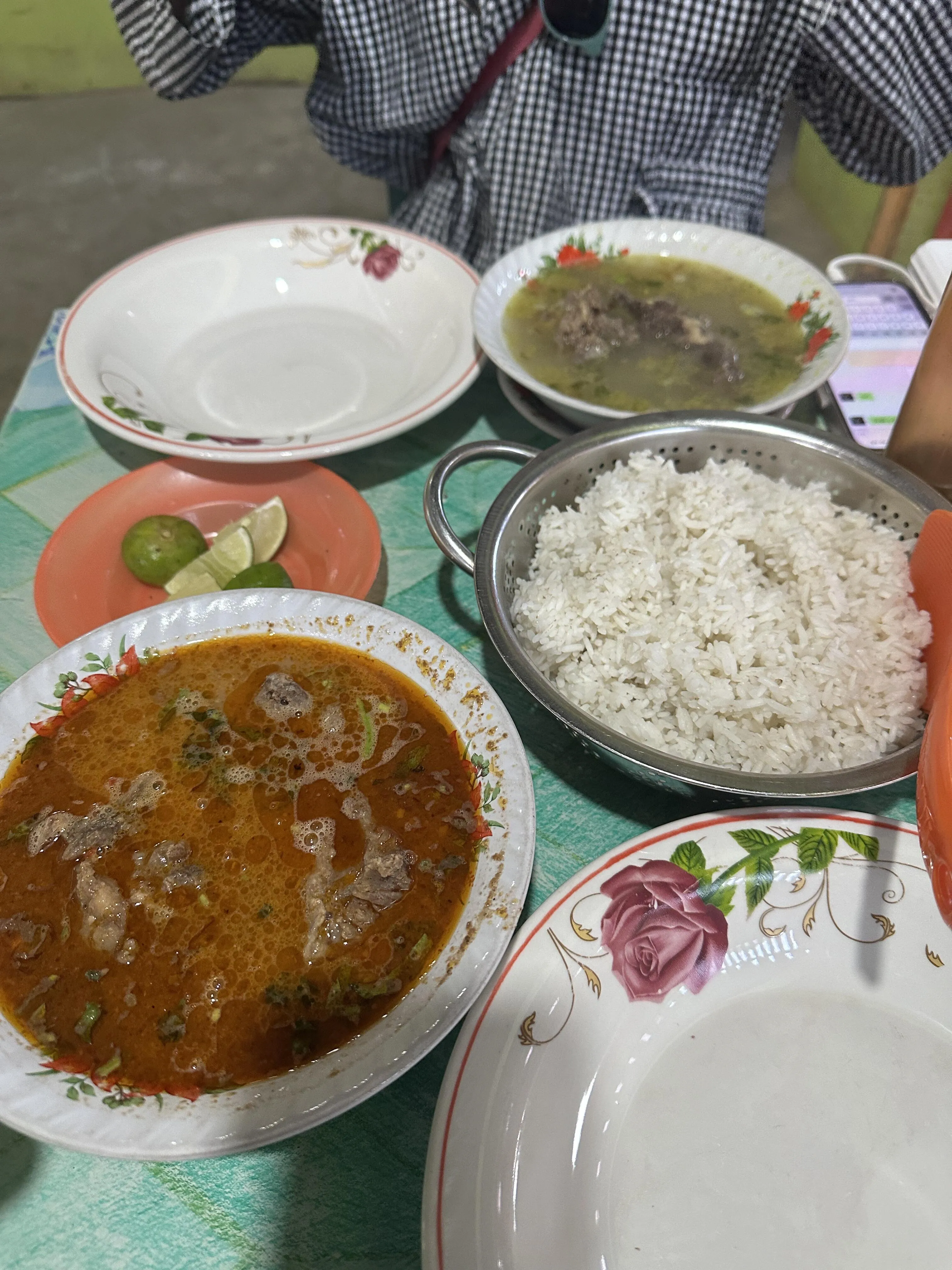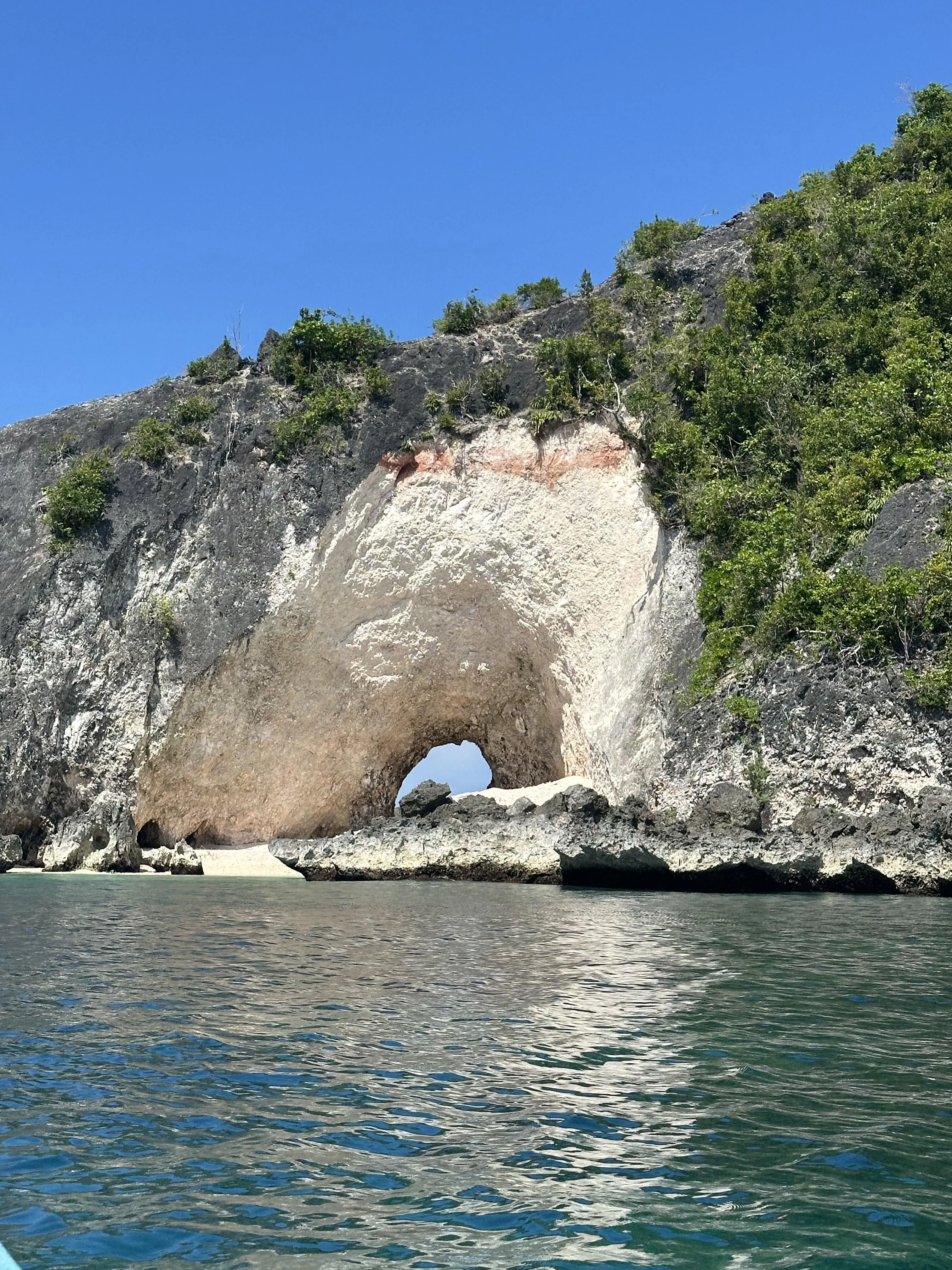 第八天的行程从租借Neni的摩托车开始,环岛游览。 首站是Pantai Bakum Beach ,这里虽然收取门票和停车费,但依然没有其他游客。接着前往Tanjung Gundul, 需要先骑摩托到Pasir Putih村 ,然后租用当地人的小船,20分钟即可到达。那里有一座由风浪从石灰岩中雕凿而成的巨大岩石拱门,周围还有一些已经坍塌的石灰岩。之后直接前往Banggai Laut城,在当地餐厅品尝了coto骨头汤,味道颇为适口。