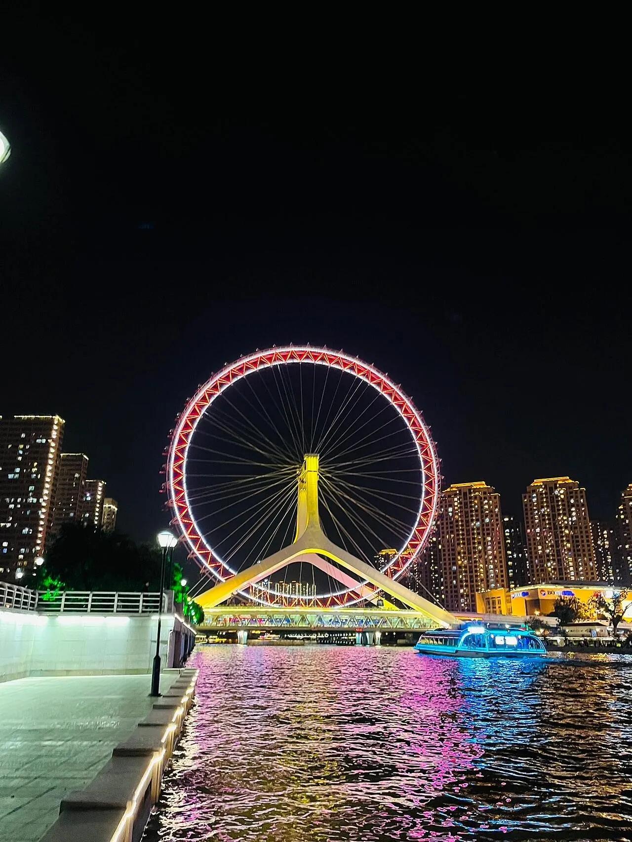 夜晚,海河码头两岸的景色令人陶醉。天津之眼(4A级景区)在夜色中格外浪漫。建议和爱人一起沿着渡口骑行,吹着晚风,比乘坐游船更有体验感。