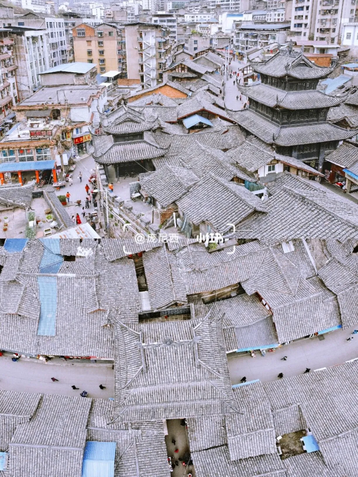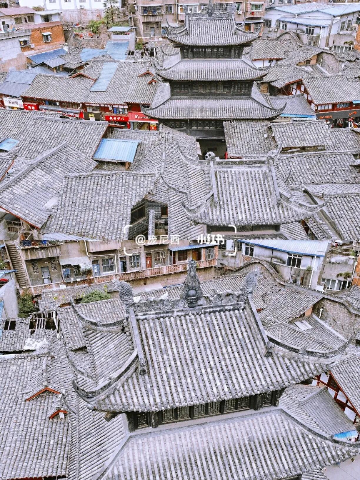 不过所谓的剑州古城实在有些寒碜,连一条完整的老街都算不上,只有靠近钟鼓楼的一小段街道还像是老房子。各种商家占据着这些老房子,小喇叭放着抖音神曲,震耳欲聋。