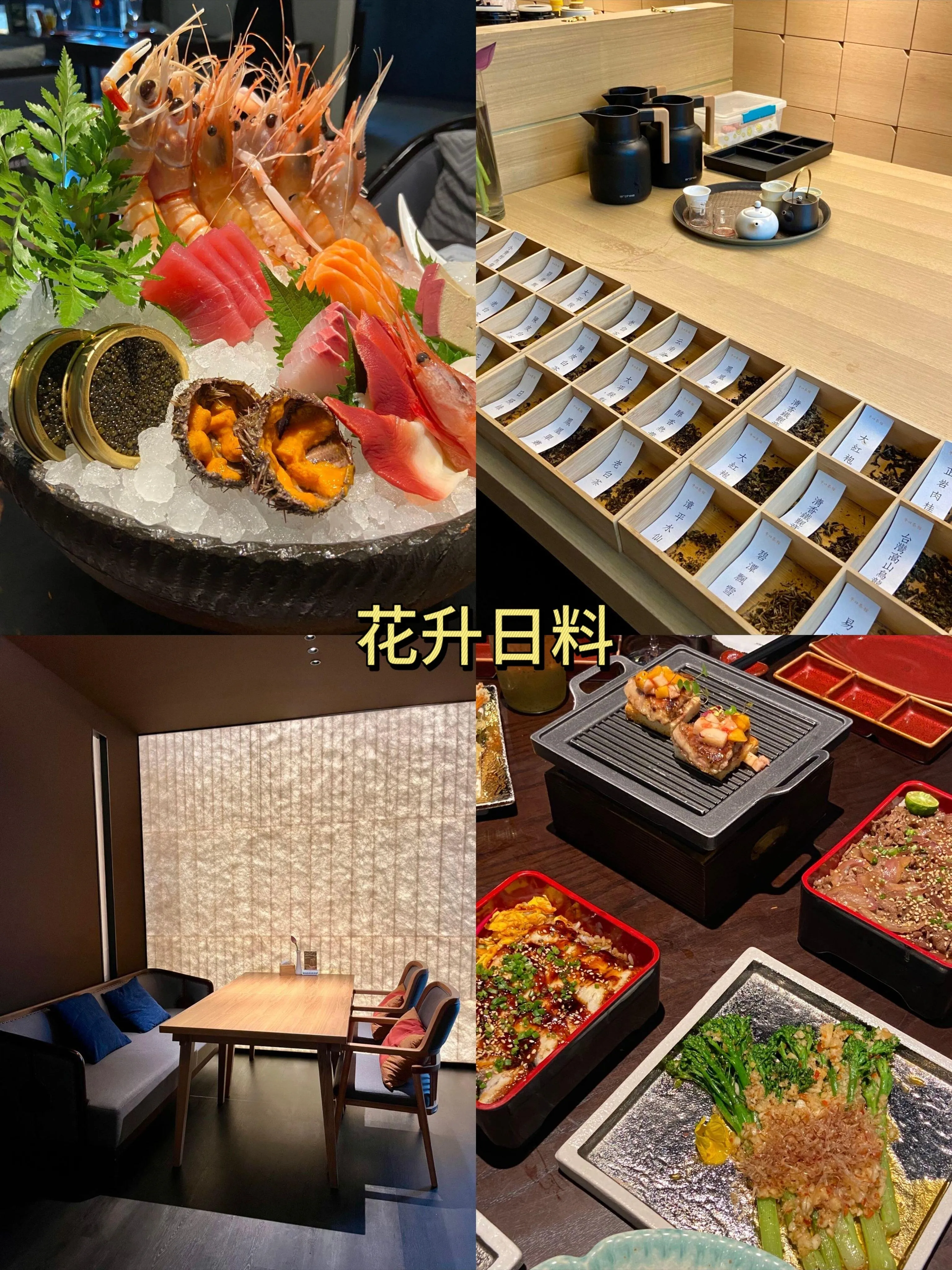 花升日料:这是一家放题式自助日料店,以食材新鲜著称。提供各种刺身拼盘,包括三文鱼、金枪鱼、北极贝、甜虾、鳌虾等。蛋黄焗小青龙和脆皮乳鸽也值得一试。适合朋友聚会或情侣约会。