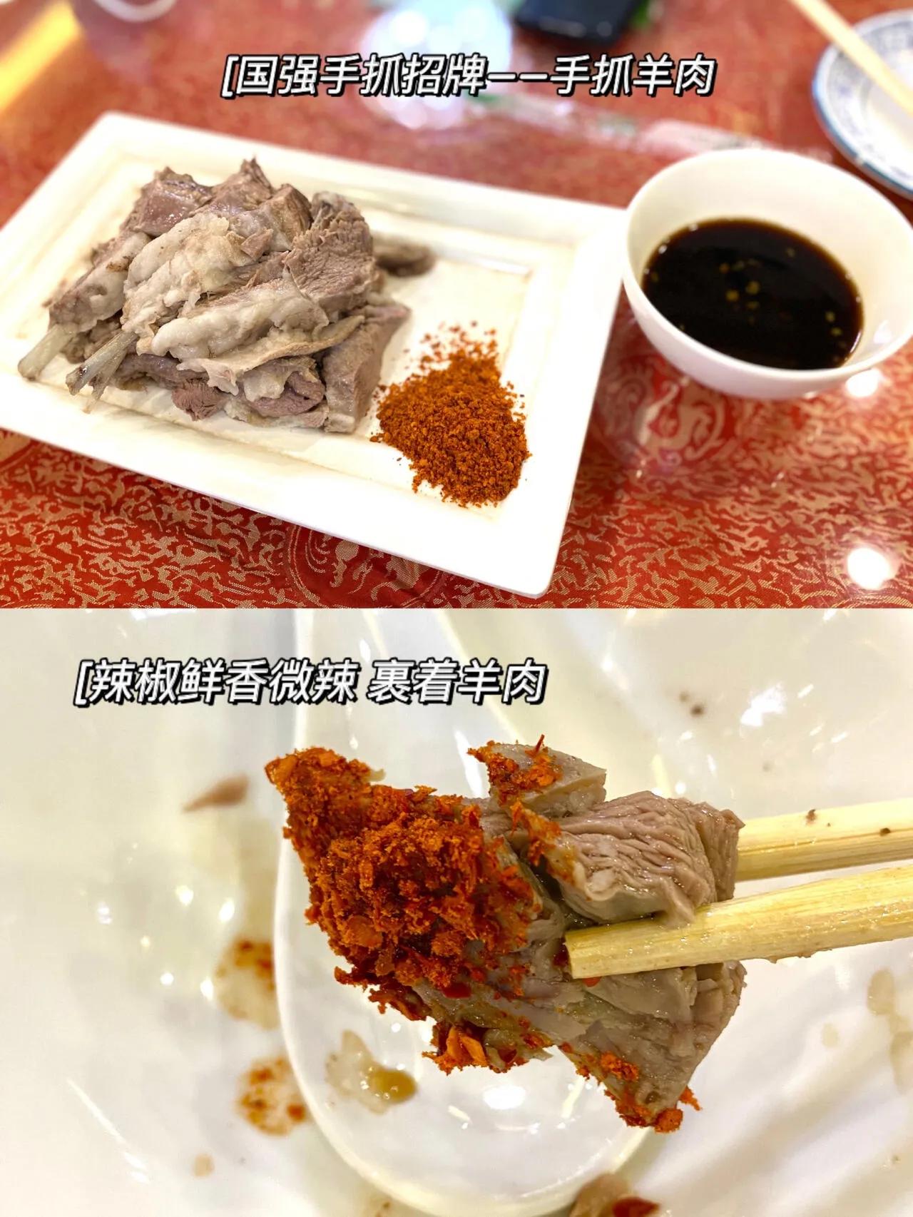 手抓羊肉:宁夏的滩羊真的太好吃了!一斤起点,有肋条和后腿部位可以选,还可以选择微辣加香菜等,随各自口味。蘸料辣椒不会很辣,刚刚好,提升了羊肉的鲜味。不蘸料,就这么干吃也好吃。