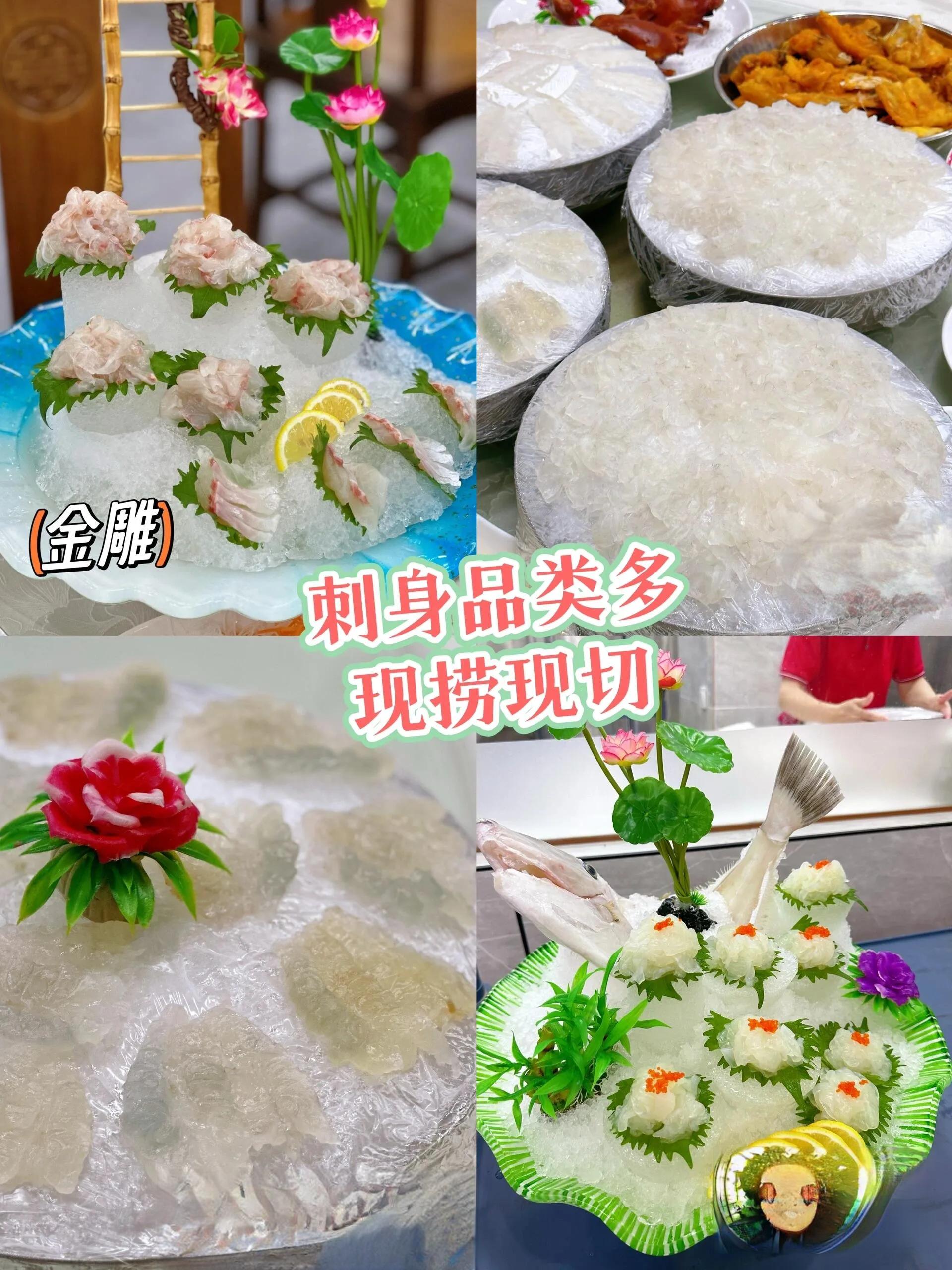 环境整洁干净舒适,透明式厨房里四五个师傅同时在切鱼生,规模之大足以证明其专业性。鱼生品种丰富,都是现点现捞的,无论是章红、金雕、吊水鲈、吊水罗非、蒲坑鲩还是剥皮牛都有。