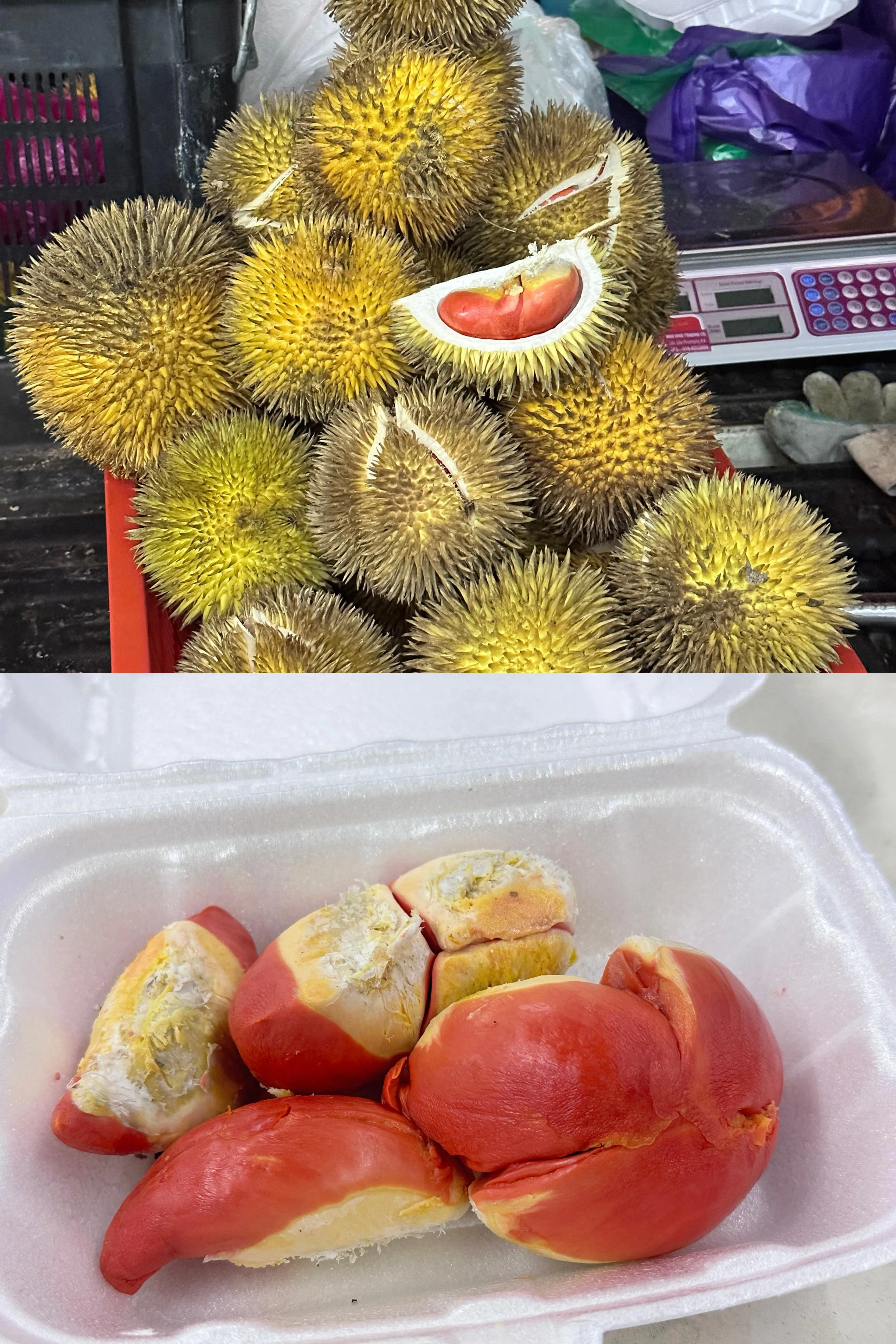 。有游客觉得本土神山榴莲过熟,不太好吃。对面的红榴莲价格便宜,但口感像花生酱。