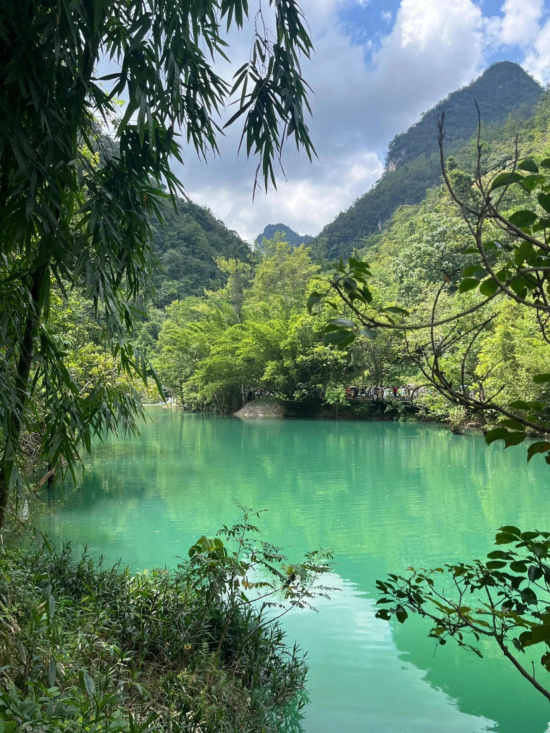 小七孔的景色真的很美,蓝绿交织的水色特别吸引人