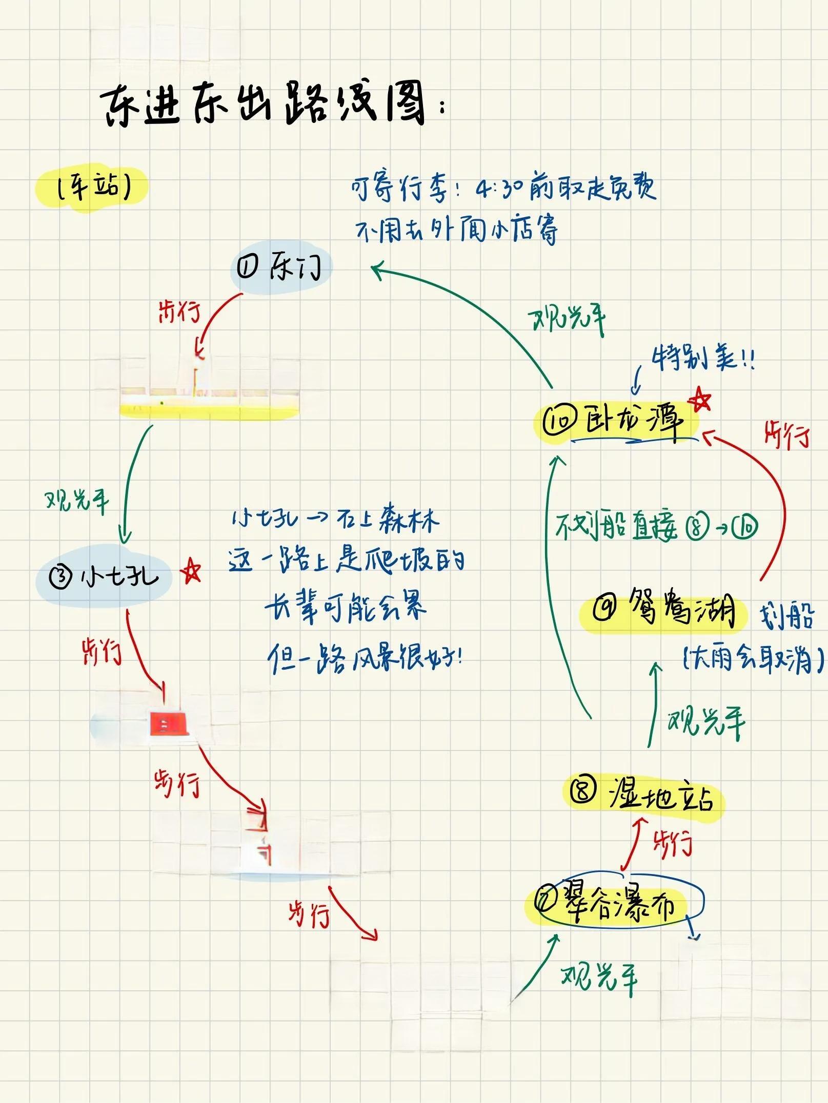 我带着体力不太好的父母选择了东进东出的路线,整体体验非常棒。我们一共游览了6个景点,大约花费5-6小时。