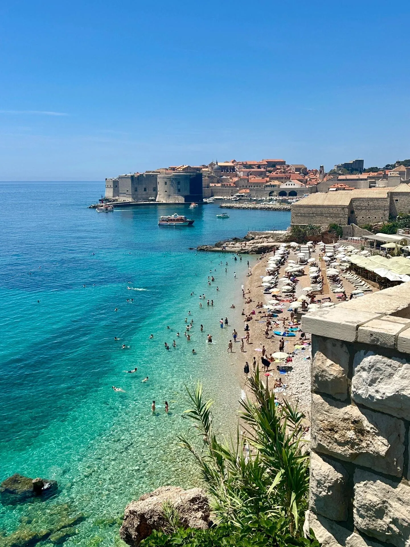 这个沙滩一定要去,我每天早上都会拎个草包下去晒太阳。谁能拒绝得了玻璃海配上杜布罗夫尼克的绝美景致啊。