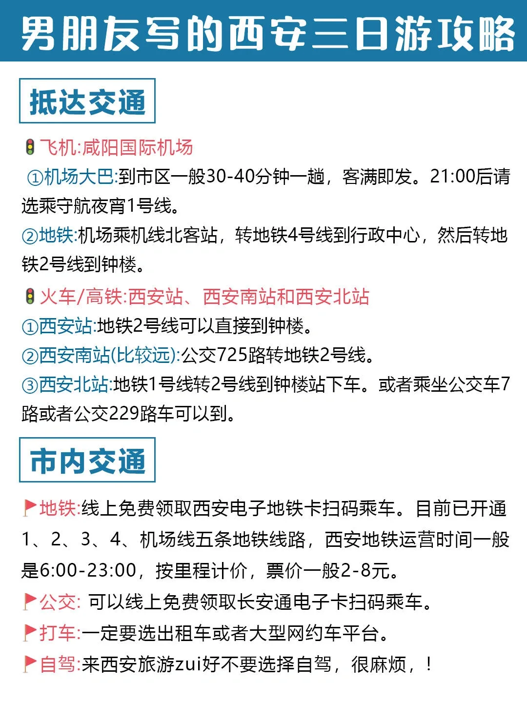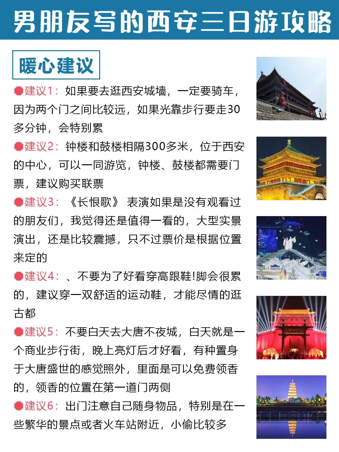 来西安旅游需要注意以下几点: