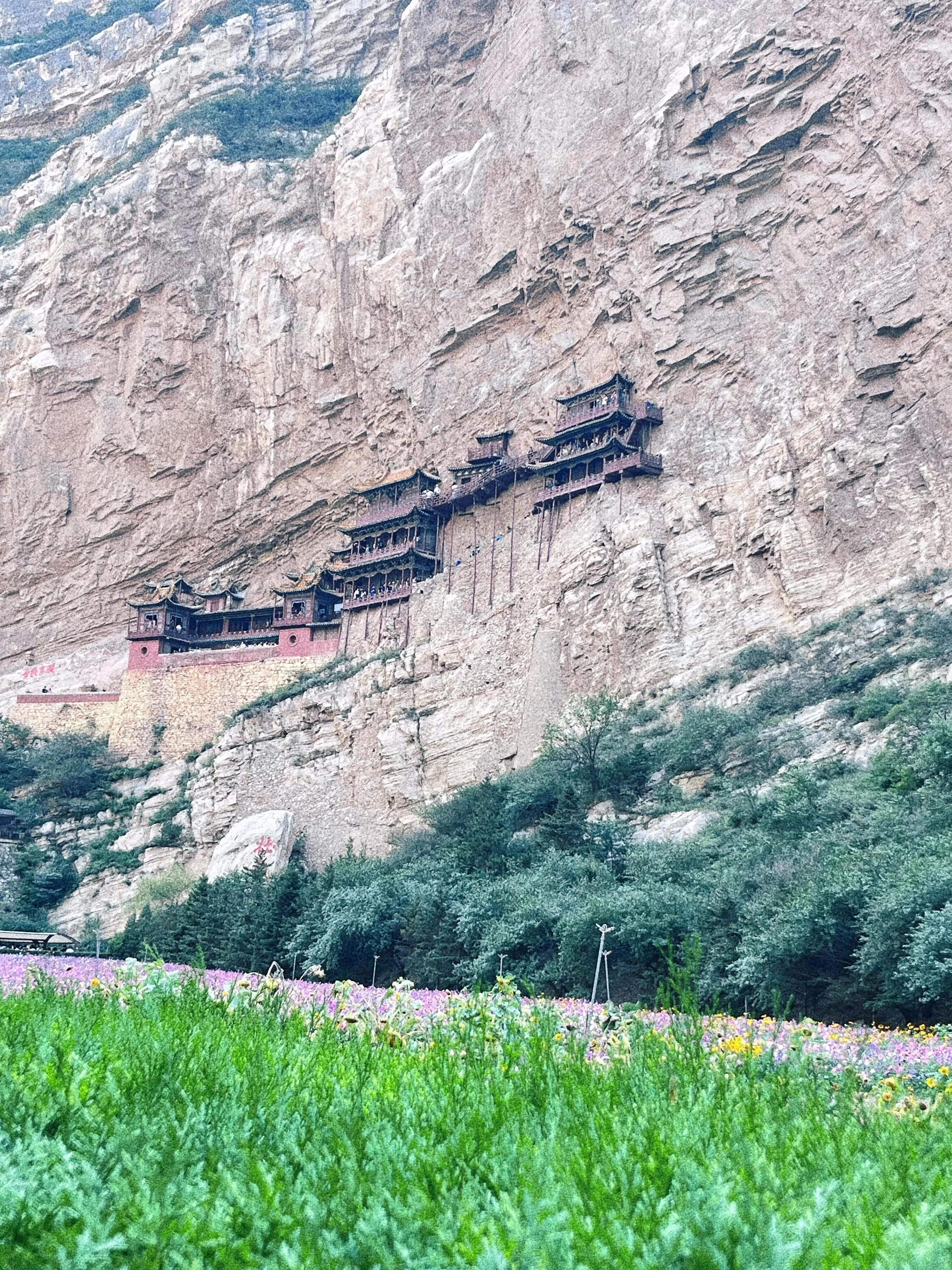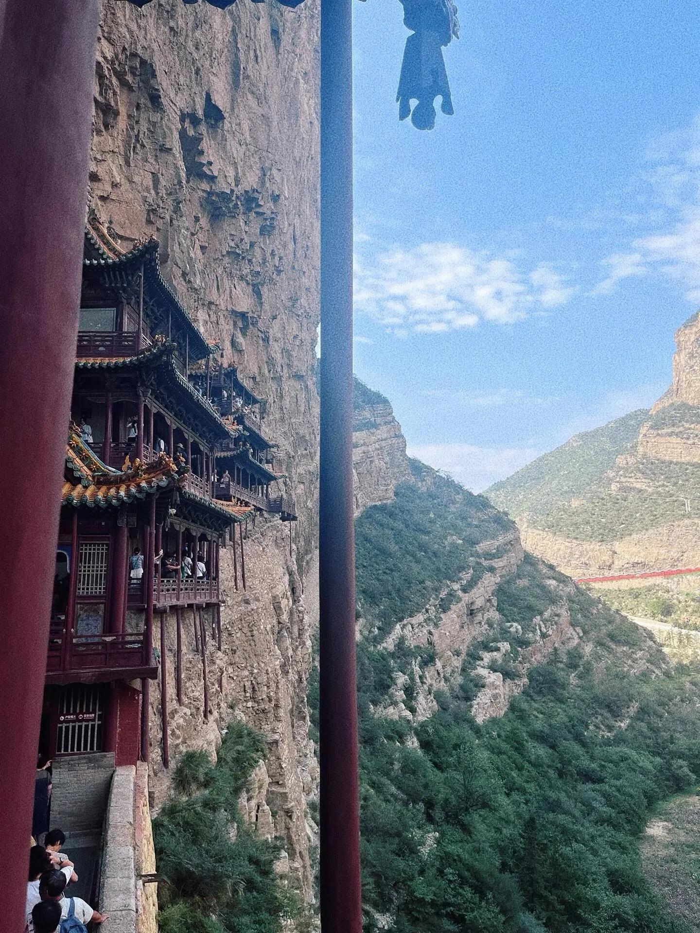 下午12点55分,从大同乘坐官方直通车前往悬空寺 ,车程约90分钟。建议提前在“云冈石窟”小程序上购买直通车票,有多个时间段可选。虽然网上没有抢到登临票,但当天景区人流量较少,现场购票也没有排队。 登寺需要排队约1小时,寺内游览时间30分钟足够。