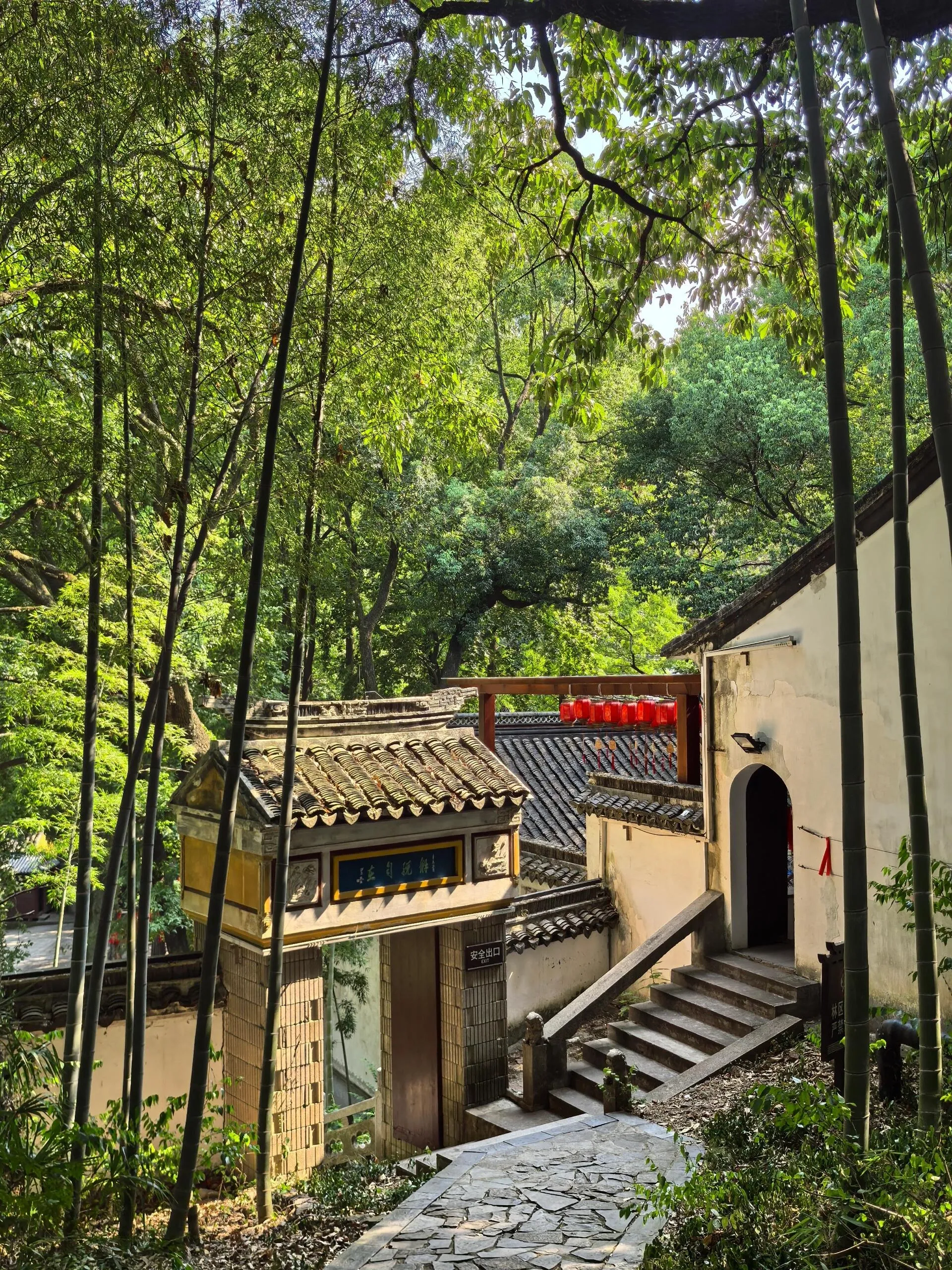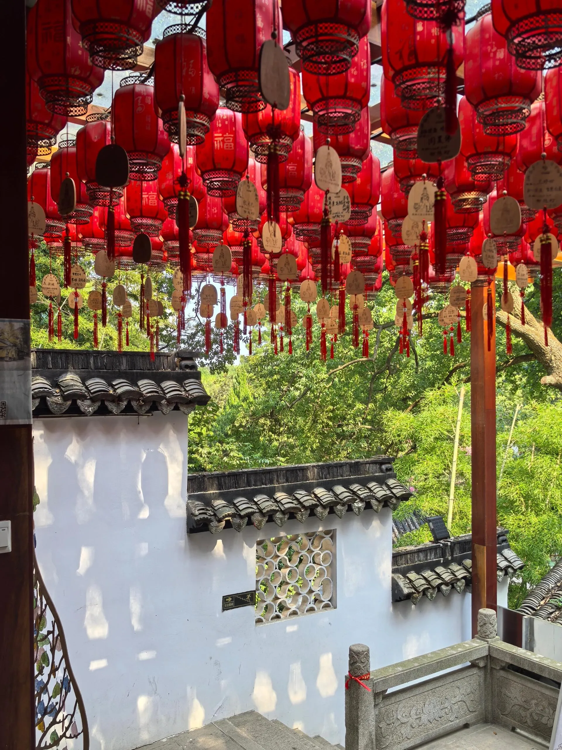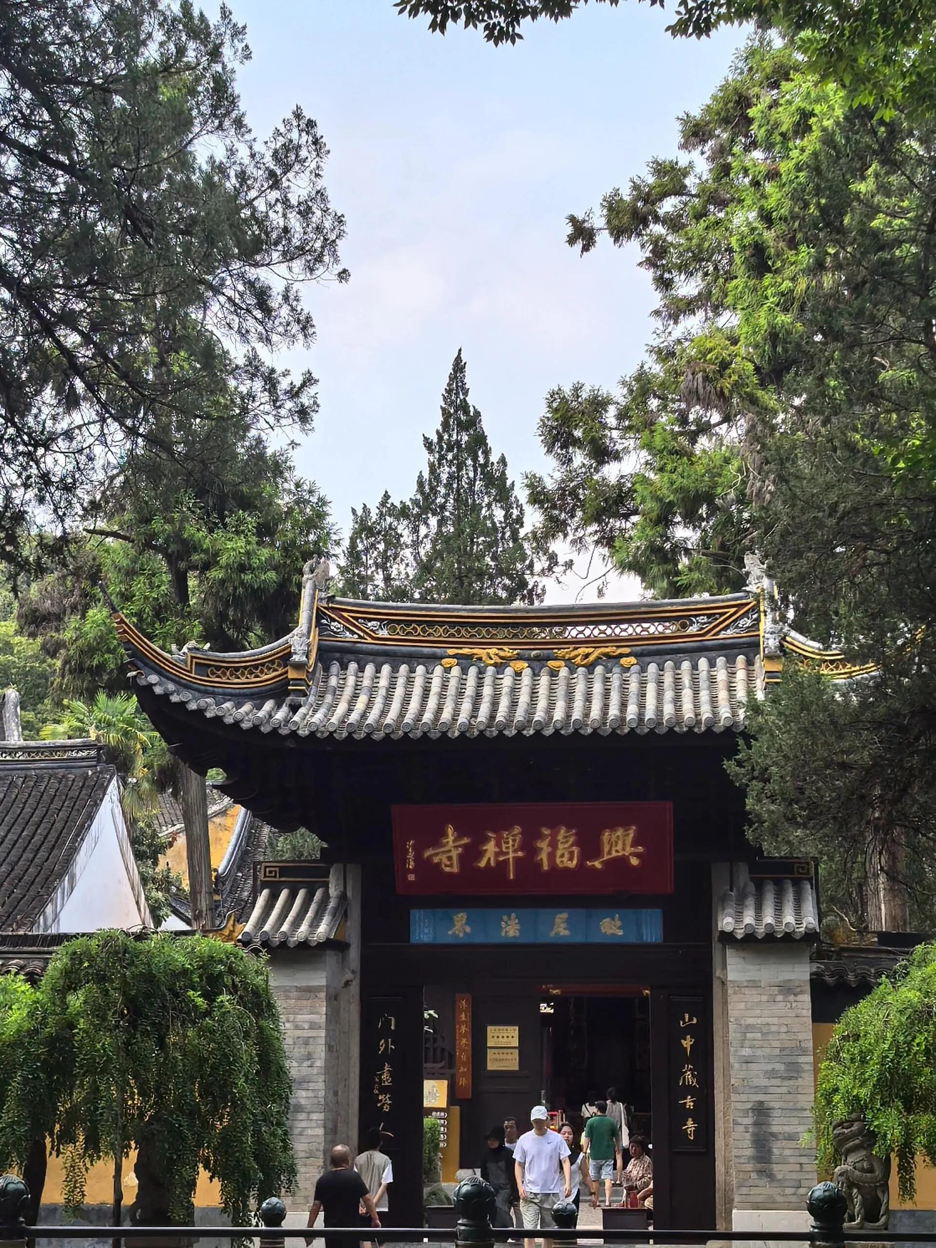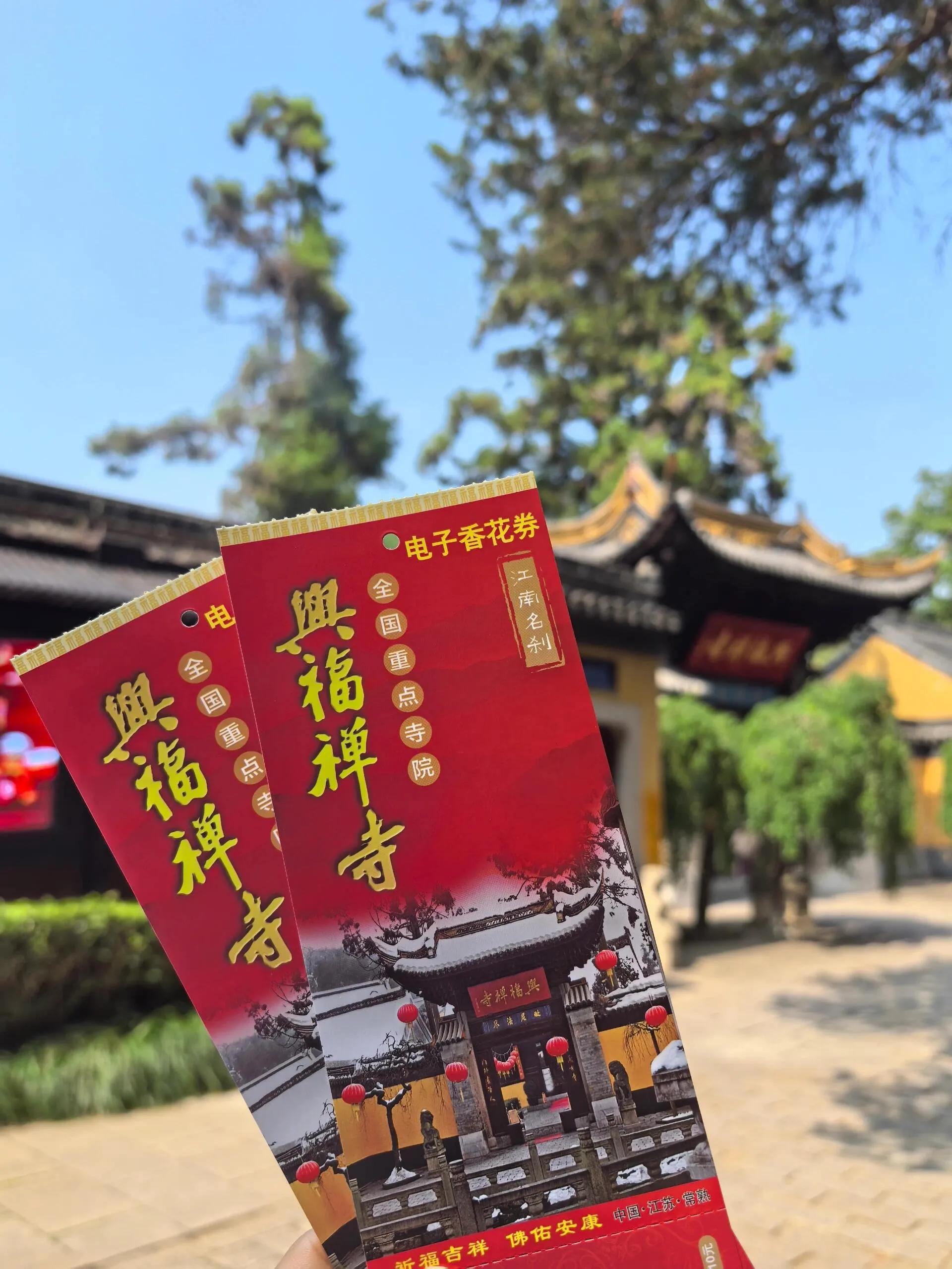 兴福禅寺坐落在虞山脚下 ,是一座规模不大但很精致的寺院。寺院门口就是通往山上的路口,常有装备专业的徒步爱好者从这里开始登山。寺院后院有一个养锦鲤的池子,游客可以购买鱼食喂鱼。院子里悬挂着可爱的木鱼,廊子顶上挂满了祈福的红色灯笼,与郁郁葱葱的绿树、白墙黛瓦的建筑相映成趣。空气中弥漫着寺庙特有的香火味,视觉和嗅觉的体验都十分浓烈,却又与寺院的宁静形成独特的反差感。兴福禅寺的门票为10元/人,同样无需预约。