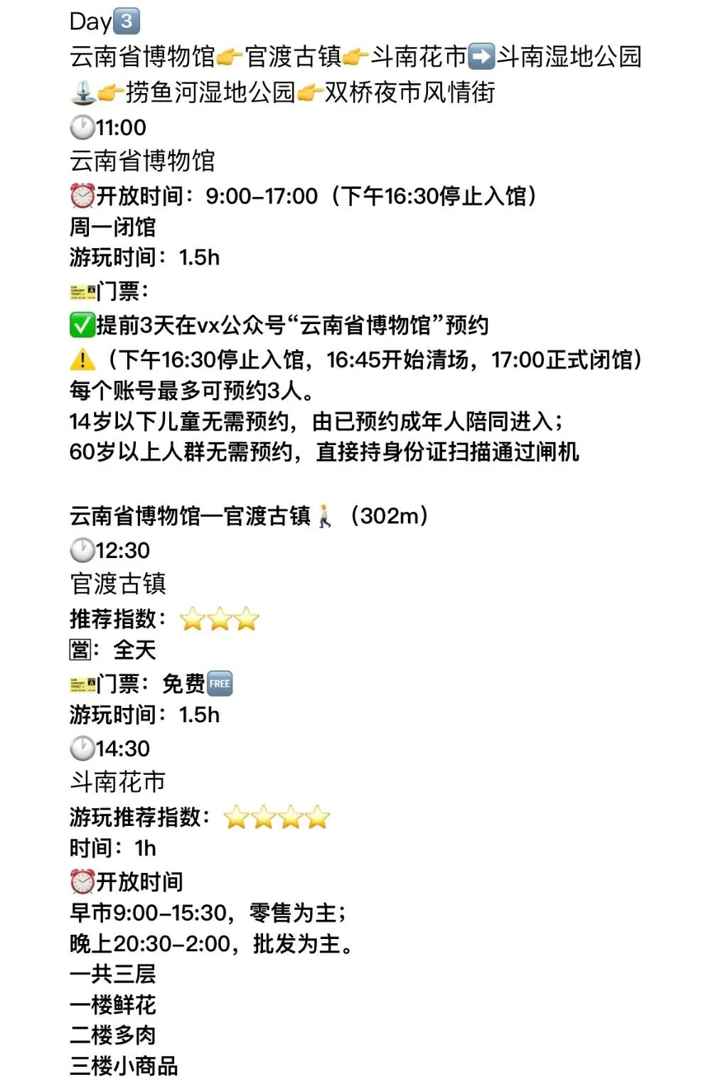 ,中午前往官渡古镇。下午可以逛斗南花市,这里早市以零售为主,晚市则以批发为主。一楼主要售卖鲜花,二楼是多肉植物,三楼是小商品。
